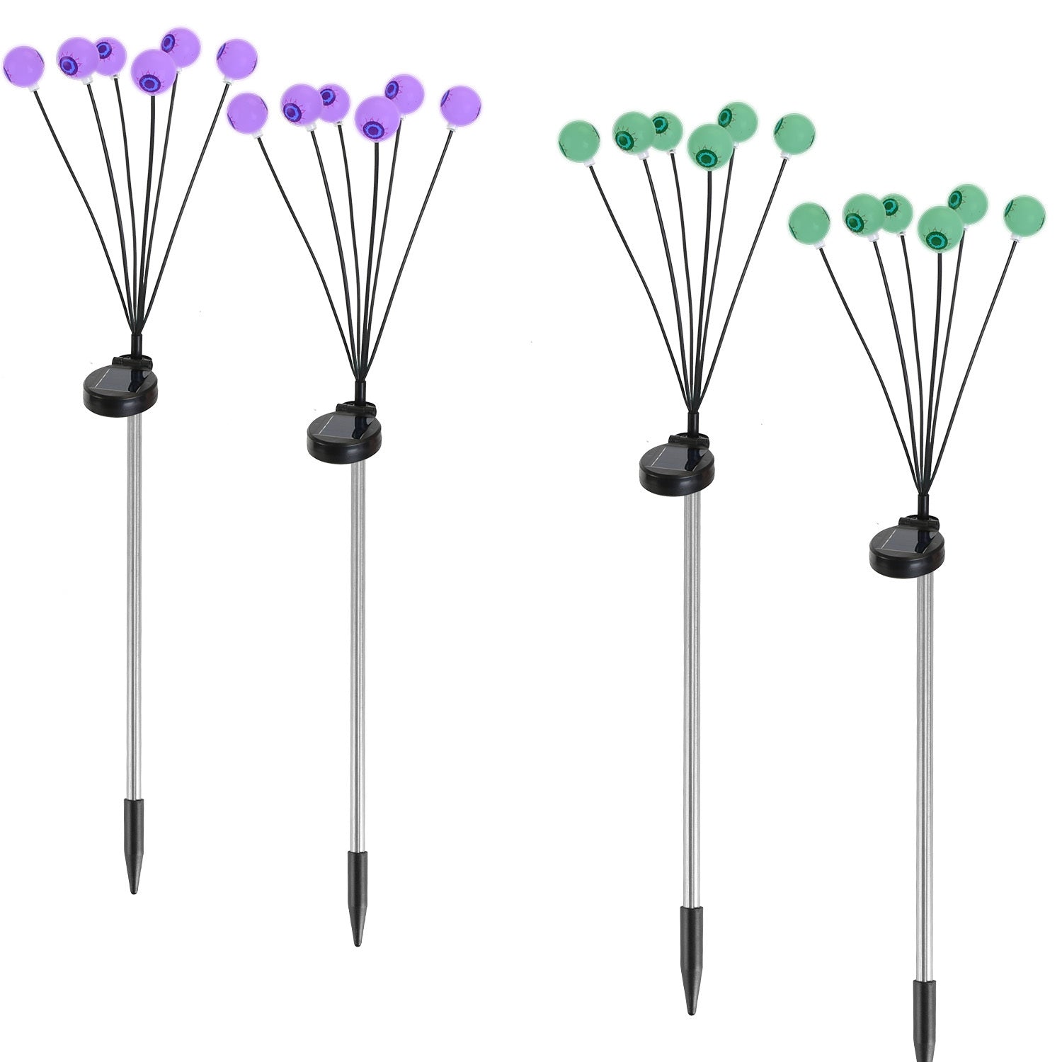 2Pcs Purple Light OR 2Pcs Green Light Solar Scary Eyeballs Lights Outdoor Halloween Decoration Swaying Light Halloween Path Lights Ornaments With Total 12LED IP65 Waterproof For Yard Garden