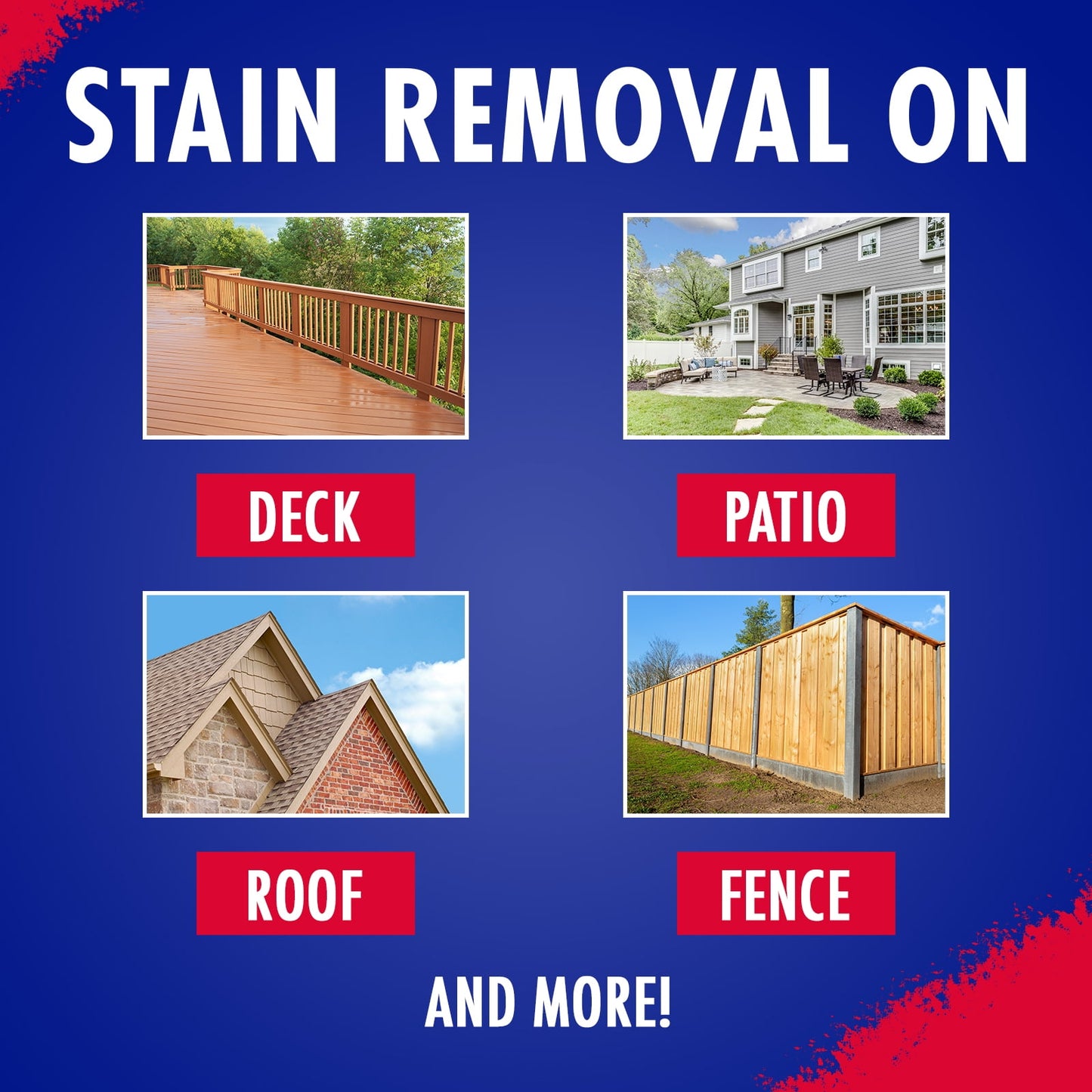 - WORKS GREAT ON A VARIETY OF OUTDOOR SURFACES: Works on many outdoor surfaces including deck, composite, concrete, bricks, vinyl siding and stucco. Use our House & Deck wash to prep for painting, staining or varnishing. It’s also great for boats, mobile homes or outdoor furniture. This is all purpose cleaner for your outdoor surfaces!