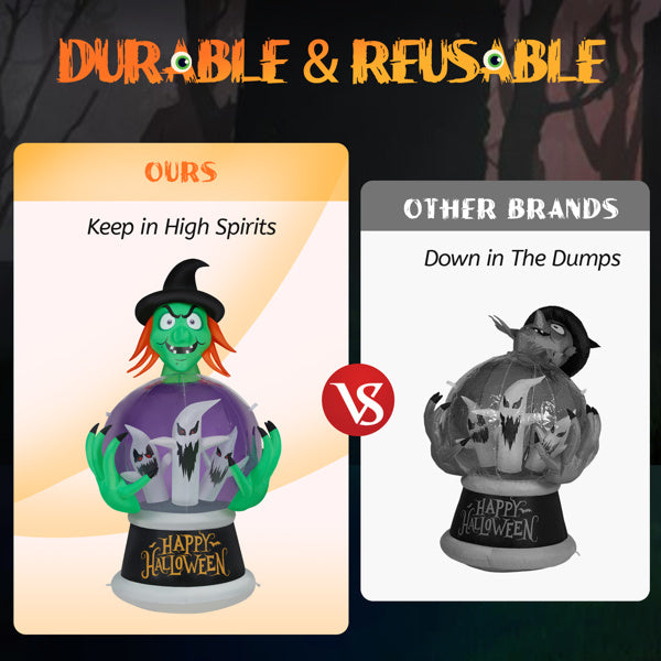 5.9ft Witch Crystal Ball With 3 LED Lights And 3 RGB Lights, Halloween Inflatable Decoration