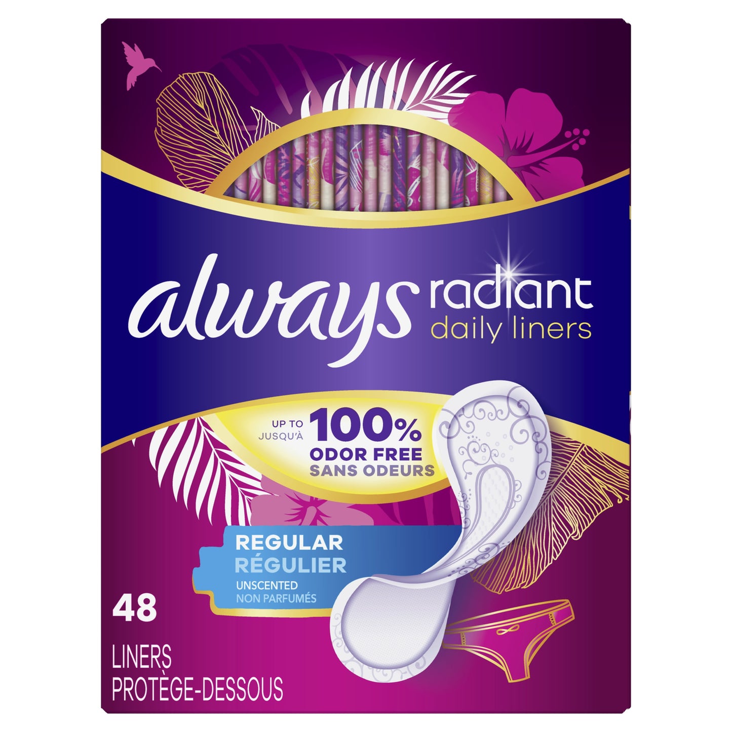 Always Radiant Daily Liners – Light Absorbency, Regular Length, 48 Count