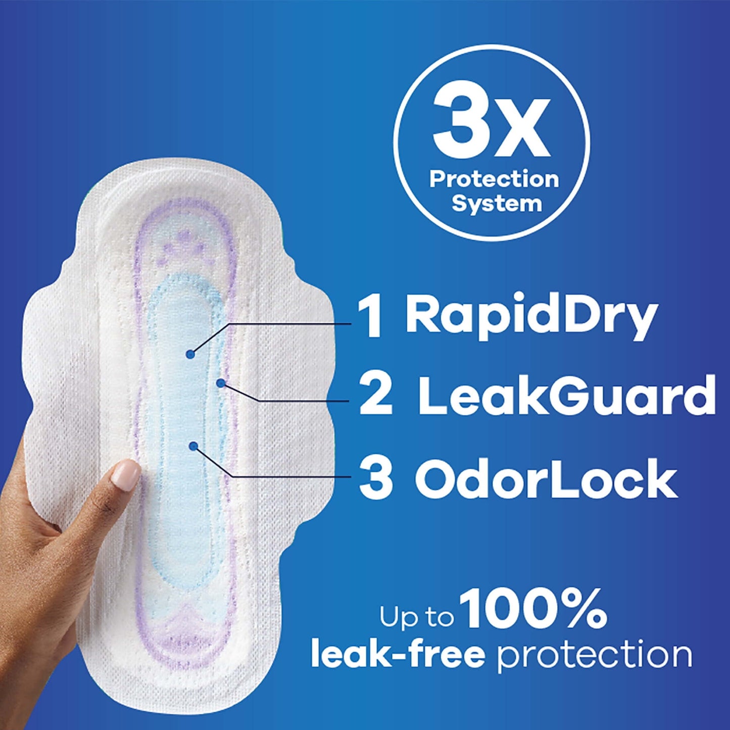 The discreet, ultra-thin design keeps you feeling confident without bulk, while flexible wings hold the pad securely in place. Unscented and gentle on sensitive skin, these pads lock away moisture and odors to keep you feeling dry and fresh throughout the day.