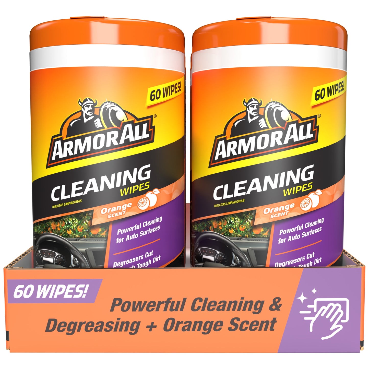 - One 60 count canister of Armor All Interior Car Cleaning Wipes in Orange Scent