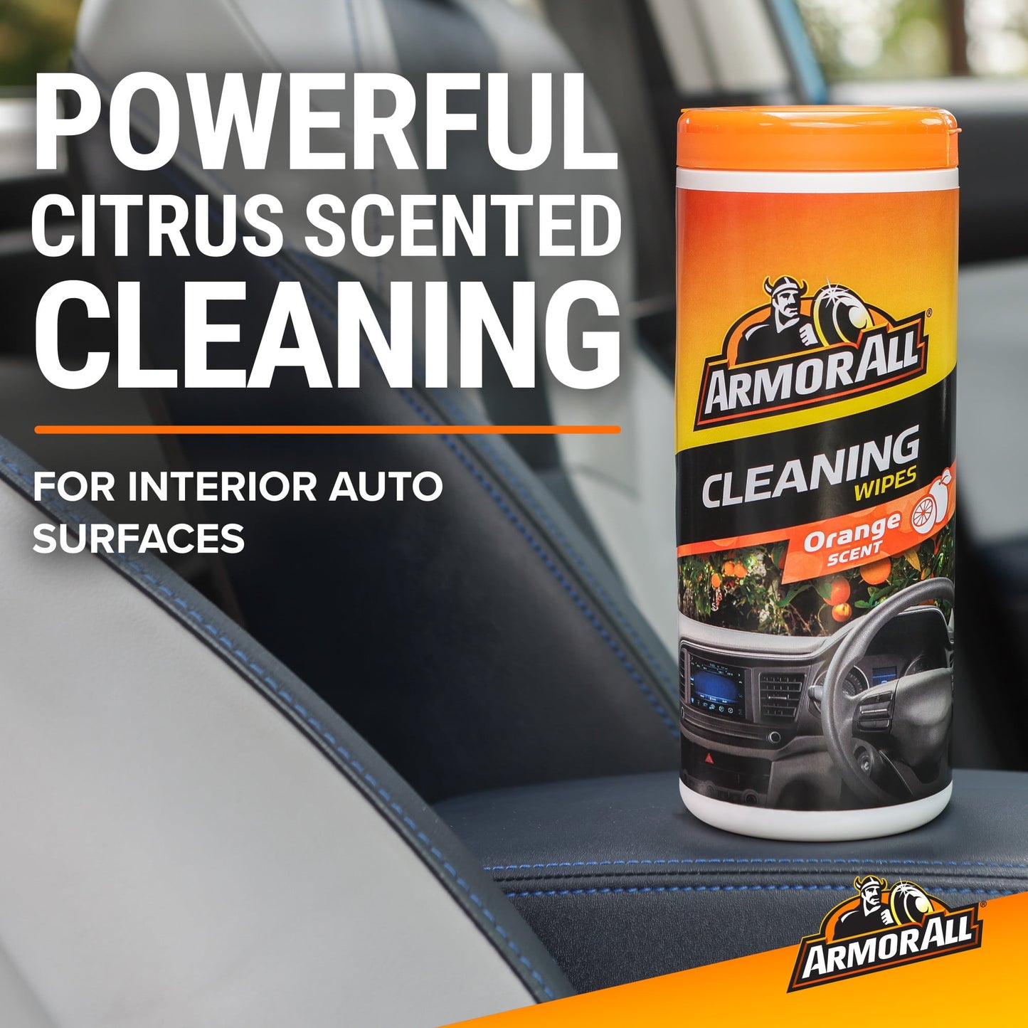 Freshen your car and give it that natural, just-detailed look with Armor All Interior Car Cleaning Wipes in Orange Scent. Scientifically engineered for your car's special needs, Armor All Interior Car Cleaner Wipes offer powerful cleaning for interior auto surfaces such as dashboards, vinyl, clear plastics, carpet and fabric. The stain-removing formula features powerful degreasers that easily remove tough dirt, dust and grime as well as stubborn smudges from sunscreen, insect repellent and more. Tested safe for automotive surfaces, our interior car wipes reveal your car’s inherent beauty without drying out, fading or otherwise damaging delicate materials. The matte finish creates a natural look that’s lint-free with no greasy residue, while the Orange scent leaves interiors smelling fresh and citrusy. For a convenient and effective way to keep your car interior cleaner, use Armor All disposable car interior wipes. In addition to car interior cleaning wipes, Armor All also makes multi-purpose car cleaning spray and other car care products. Give your vehicle the finish it deserves with Armor All, America's Most Trusted Auto Appearance Brand.