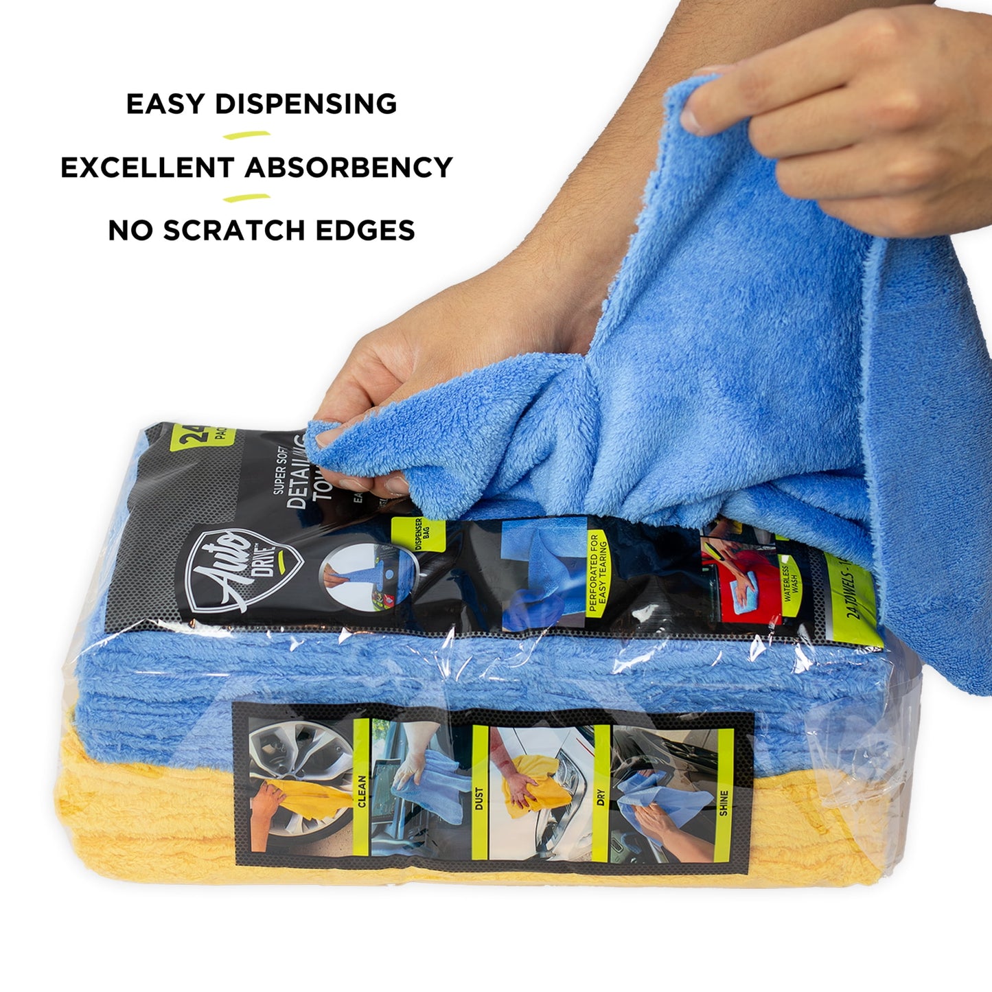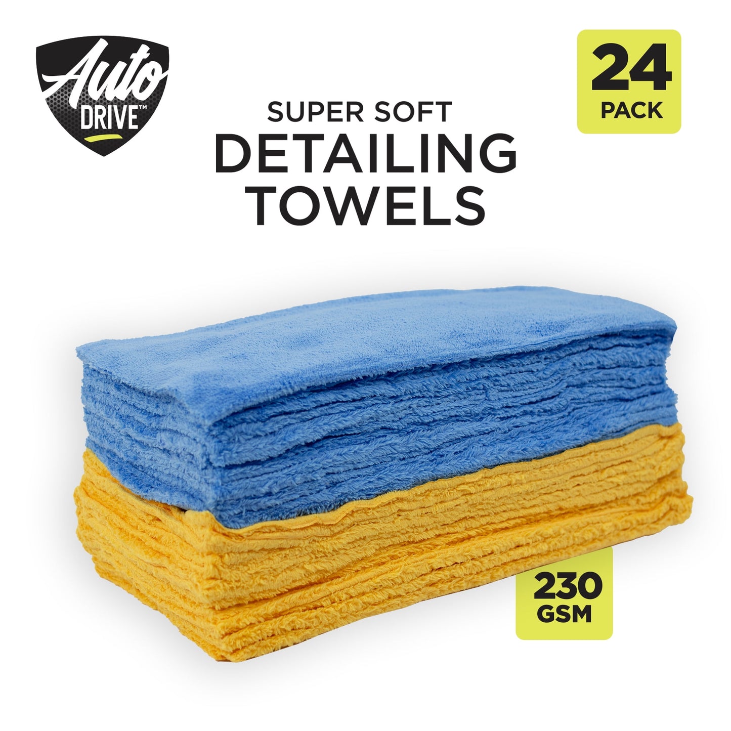 Auto Drive Super Soft Detailing Towels are the ultimate tool for interior and exterior auto detailing leaving lint-free and streak-free results. This 24-pack of coral fleece microfiber towels deliver unparalleled softness, absorbency, and durability, making it a must-have for every car care enthusiast. These towels attract grease, dirt particles and dust even without the use of chemicals. Measuring at 15" X 15", these multi-purpose towels cover quite the area and absorb 12X's their weight. Auto Drive Super Soft Detailing Towels are super plush and 100 percent machine washable.