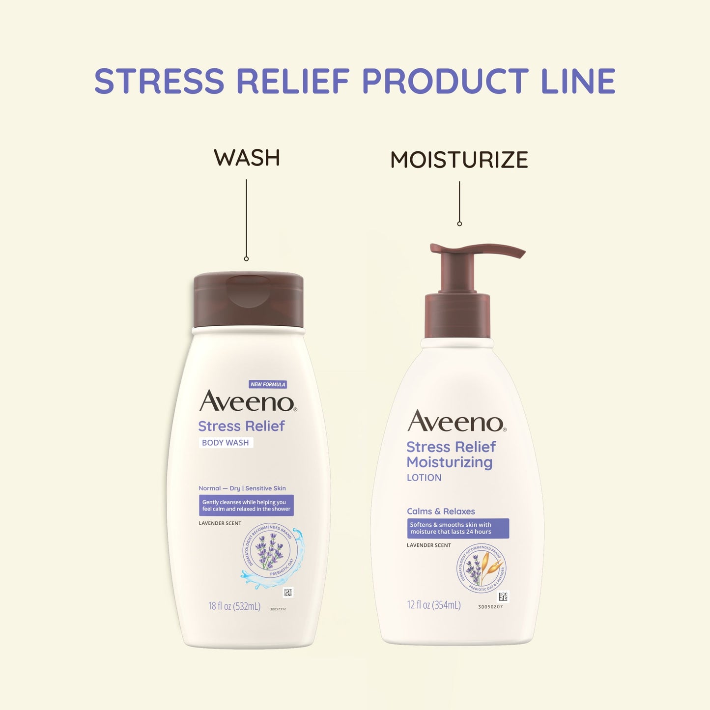 Aveeno Stress Relief Body Wash with Oat & Lavender, 33 oz – Soothing Shower Gel for Soft, Calm Skin