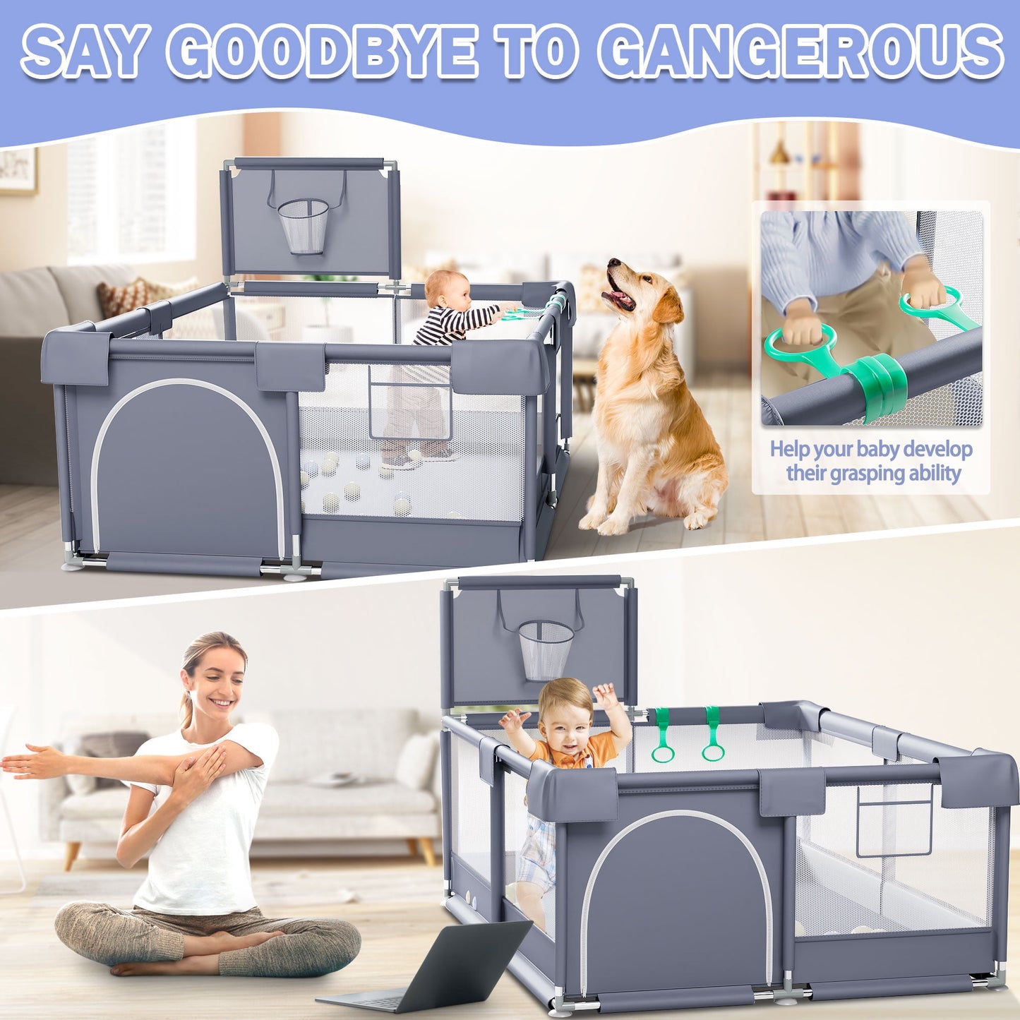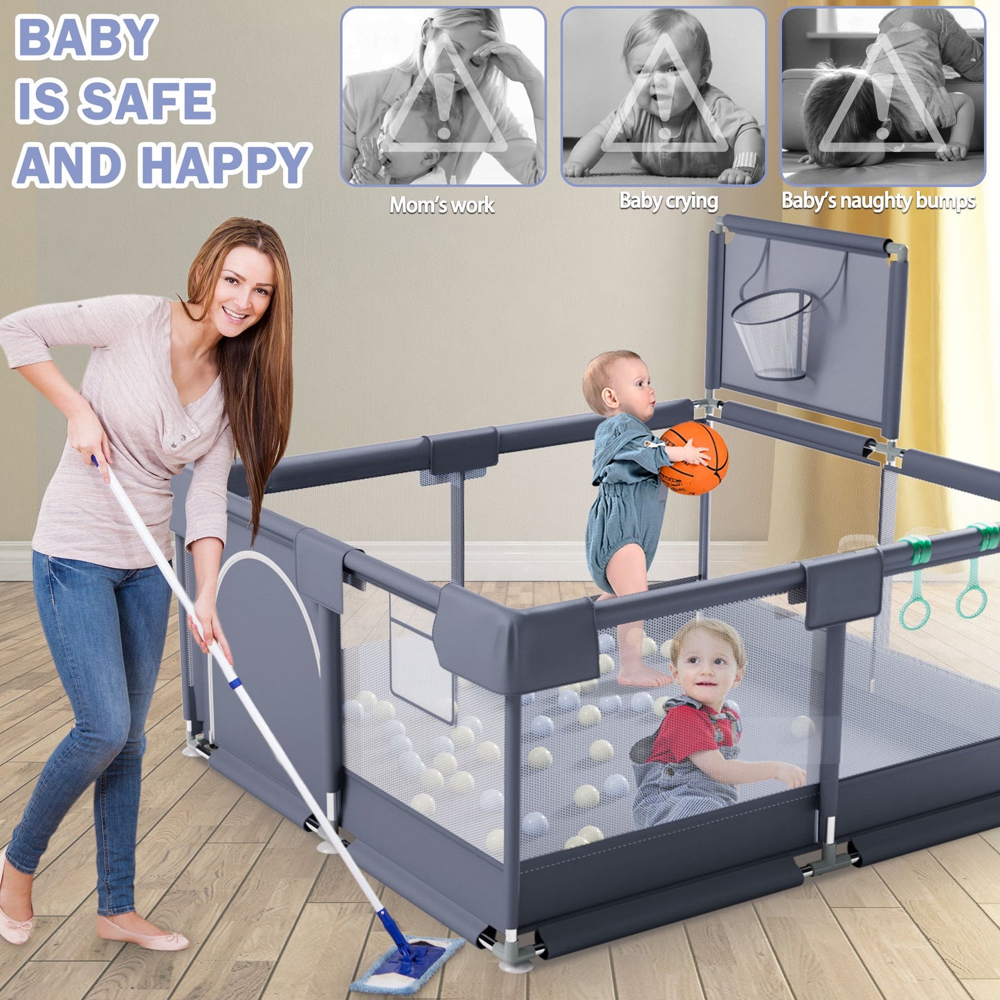 - Free Parent's hands: With the help of Babyeap Large baby playpen, turns it into a great safe playgrounds for babies! Help kids explore the world of perception, play and learn to move in their own, and keep it away from being lost or exposing to hazard areas as well. Meanwhile, the parents can free their hands to do their own things.