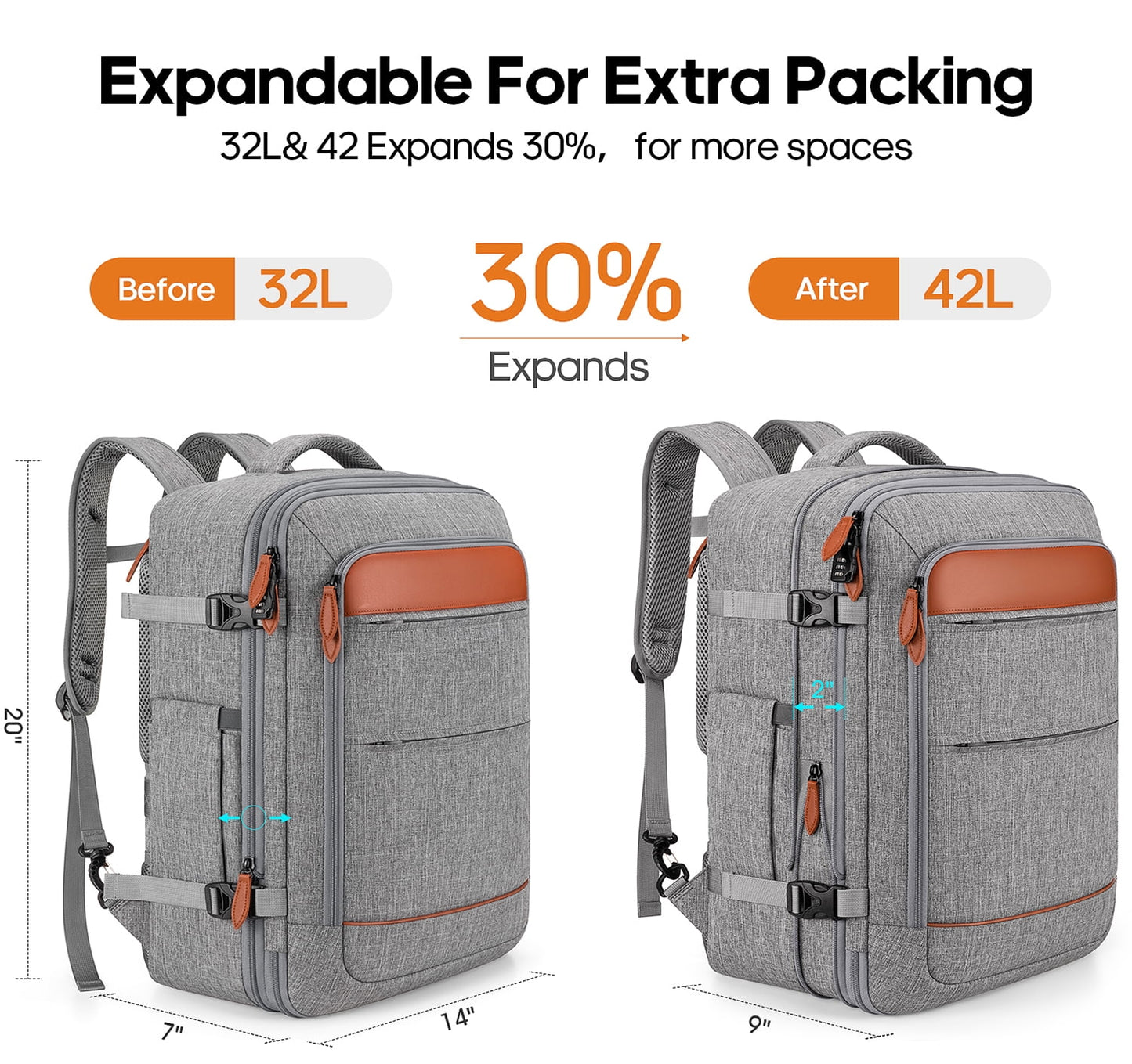 The Bagsure Travel Backpack is designed for modern travelers seeking organization, security, and convenience. With a 42L expandable capacity, this backpack easily adapts to your packing needs, fitting airline carry-on requirements.