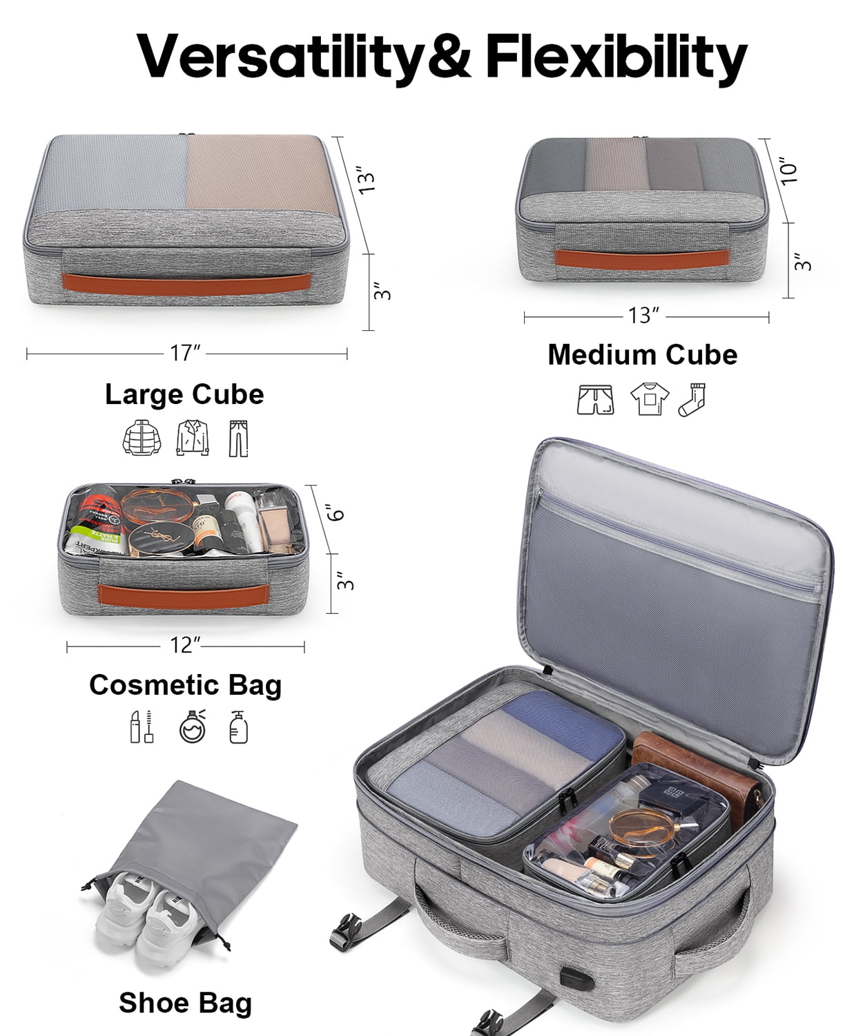 Bagsure Travel Backpack – 42L Expandable Flight-Approved Carry-On, Waterproof Anti-Theft Backpack with Packing Cubes & Shoe Pocket
