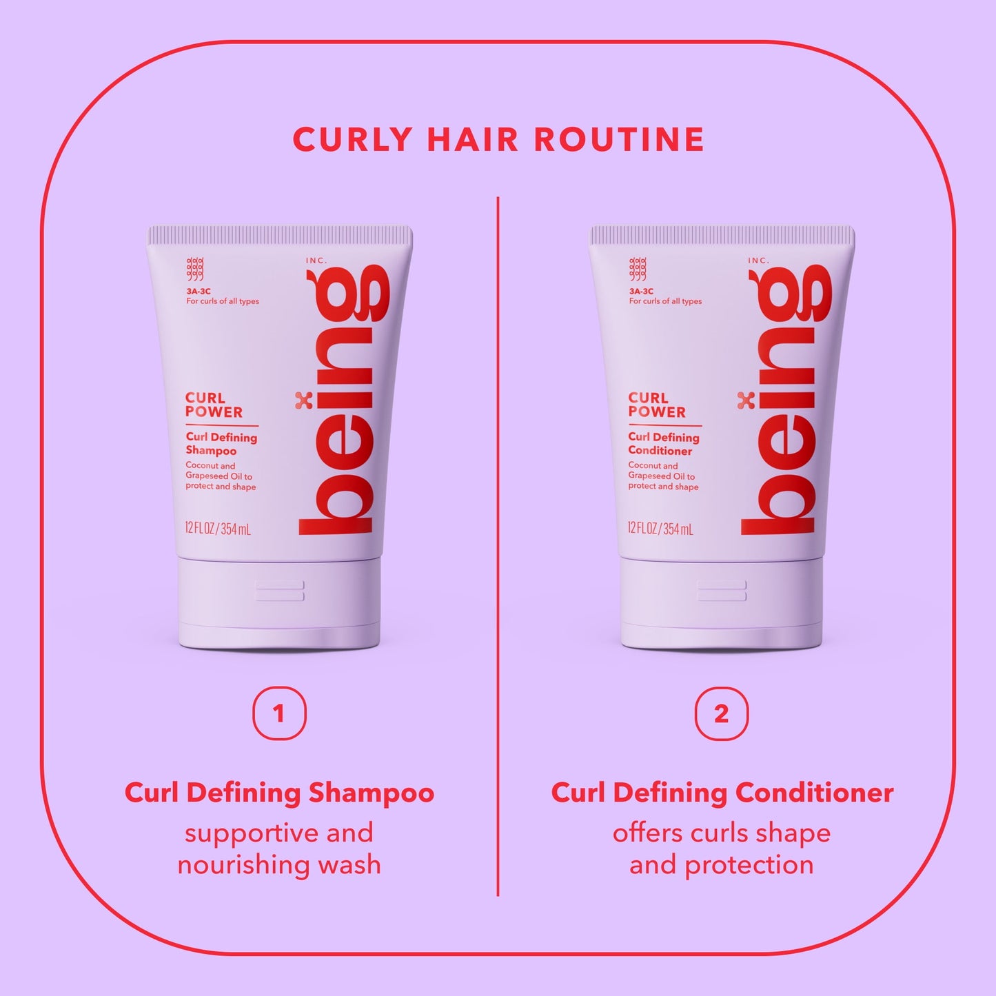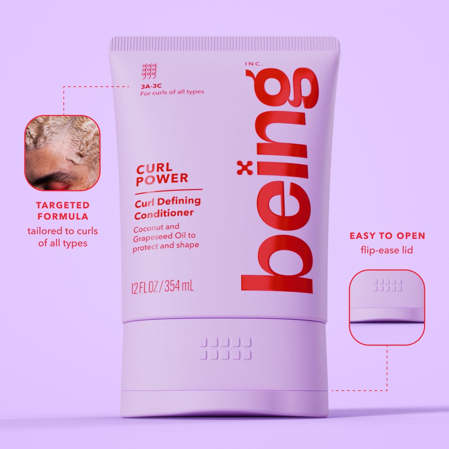 Being CURL POWER Curl Defining Conditioner is a nourishing formula specially created for adults with type 3A-3C curls, designed to help soften and provide shape. This dermatologically tested, sulfate-free and silicone-free formula contains naturally derived ingredients such as Coconut Oil and Grapeseed Oil to detangle and hydrate. Curls are left feeling defined and protected. Packaged in a convenient tube with a squeeze dispenser for easy use. Being is a community-led hair care brand created to meet all hair types exactly where they are. The range works to finesse and de-stress what you have, rather than trying to turn it into something it's not. Whether you’re curly + coarse or fine + flat, help unlock hair that makes you feel more you—for less doing and more Being.