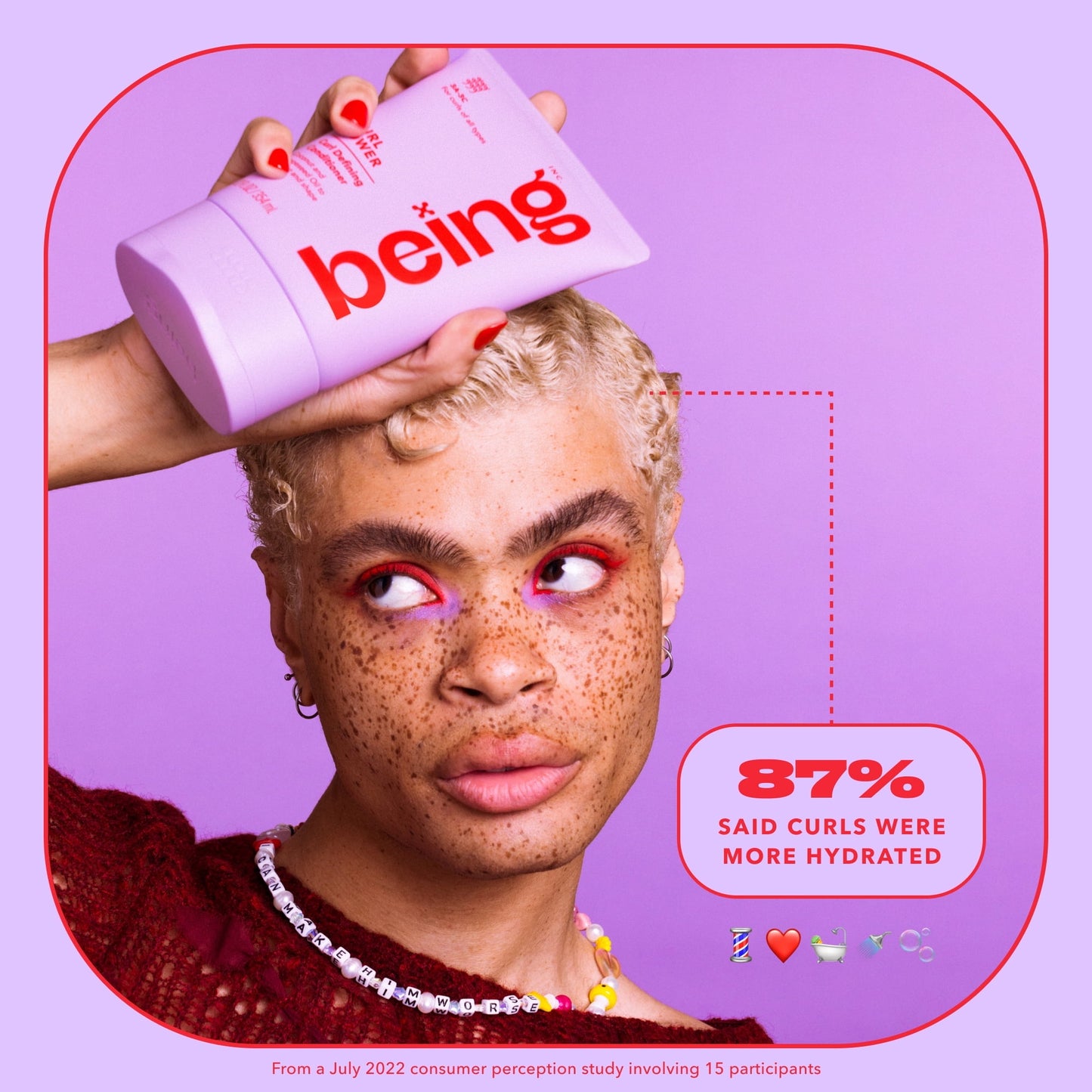 - Being is a community-led hair care brand created to meet all hair types exactly where they are. The range works to finesse and de-stress what you have, rather than trying to turn it into something it's not. Whether youre curly + coarse or fine + flat, help unlock hair that makes you feel more youfor less doing and more Being.