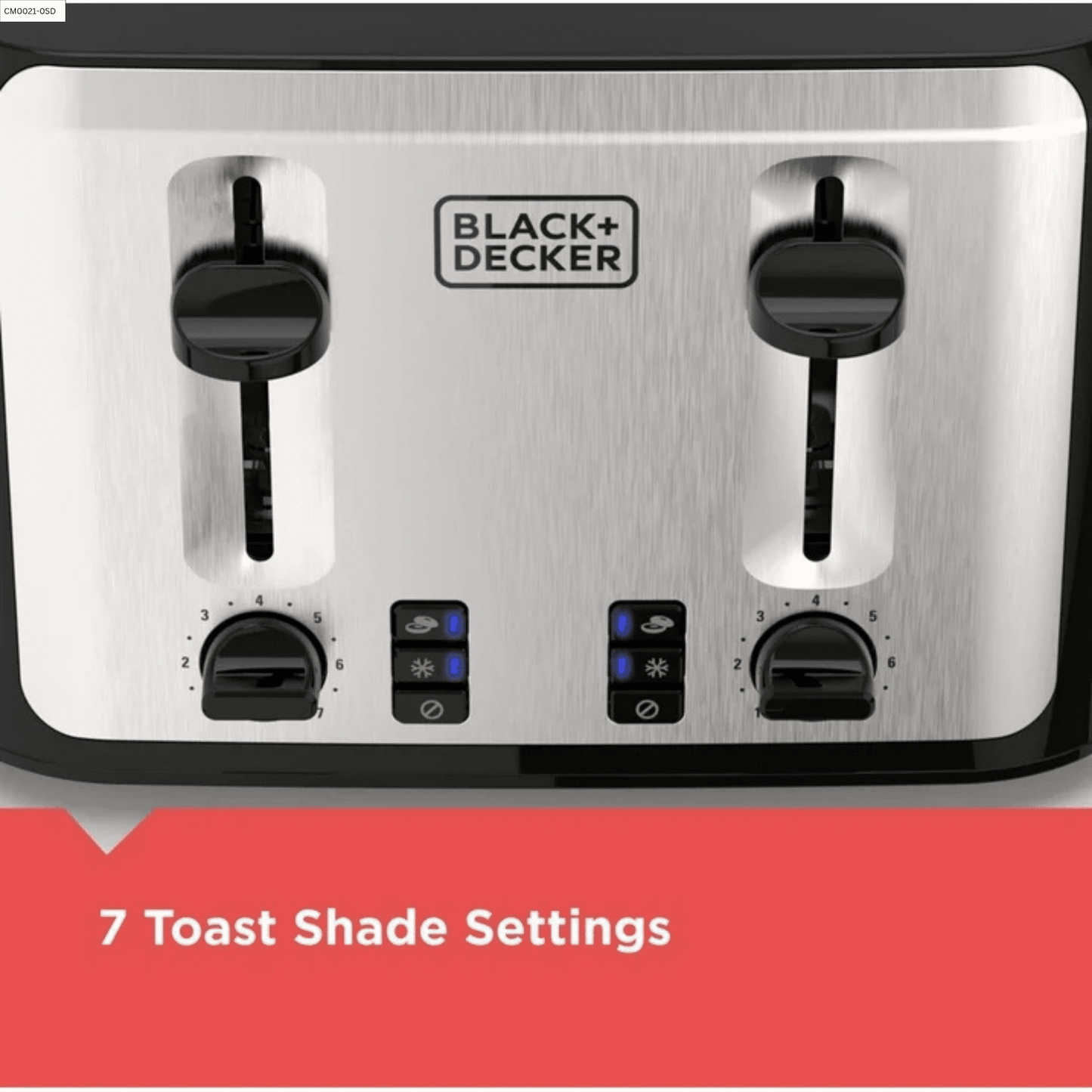 - Black+Decker 4-Slice Toaster with toast shade selector and dual knobs for customizable browning on each side