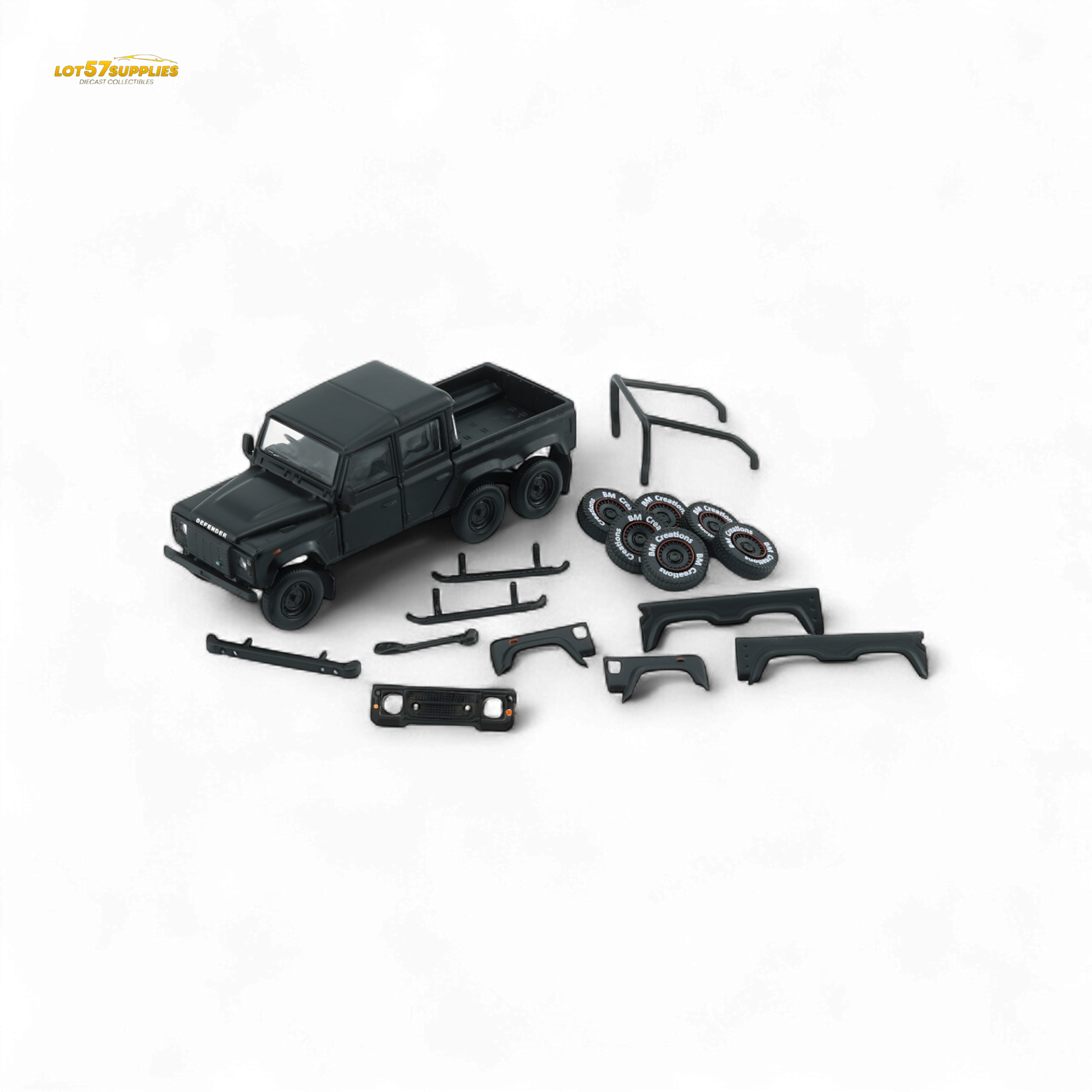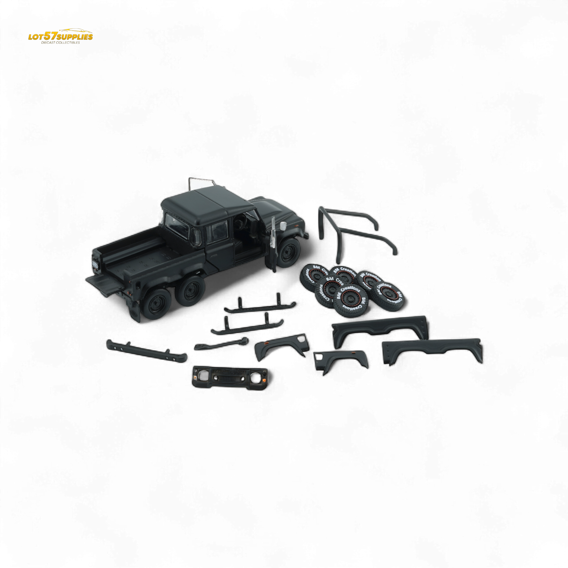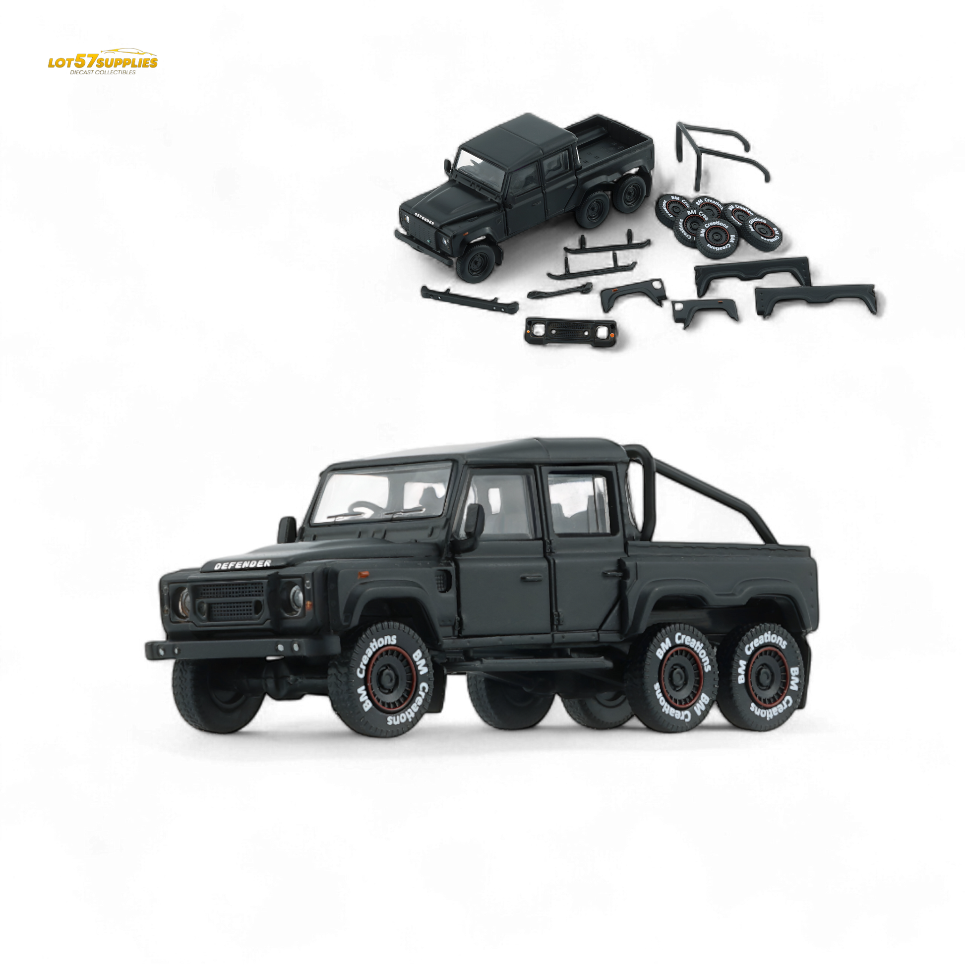 BM Creations 2016 Land Rover Defender 110 Pick Up 6x6 Off Road Matte Blk RHD 1:64