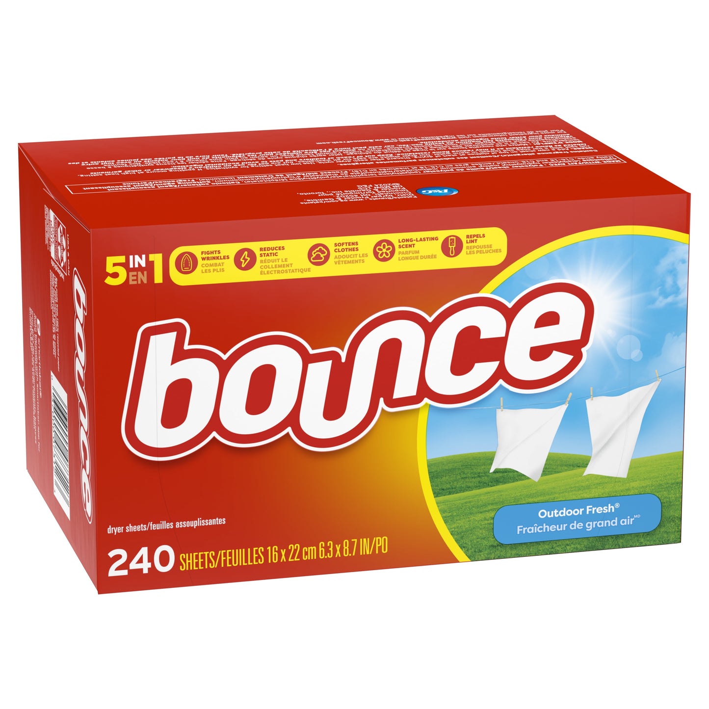 - Includes one 240 count box of Bounce Fabric Softener Dryer Sheets in the Outdoor Fresh scent
