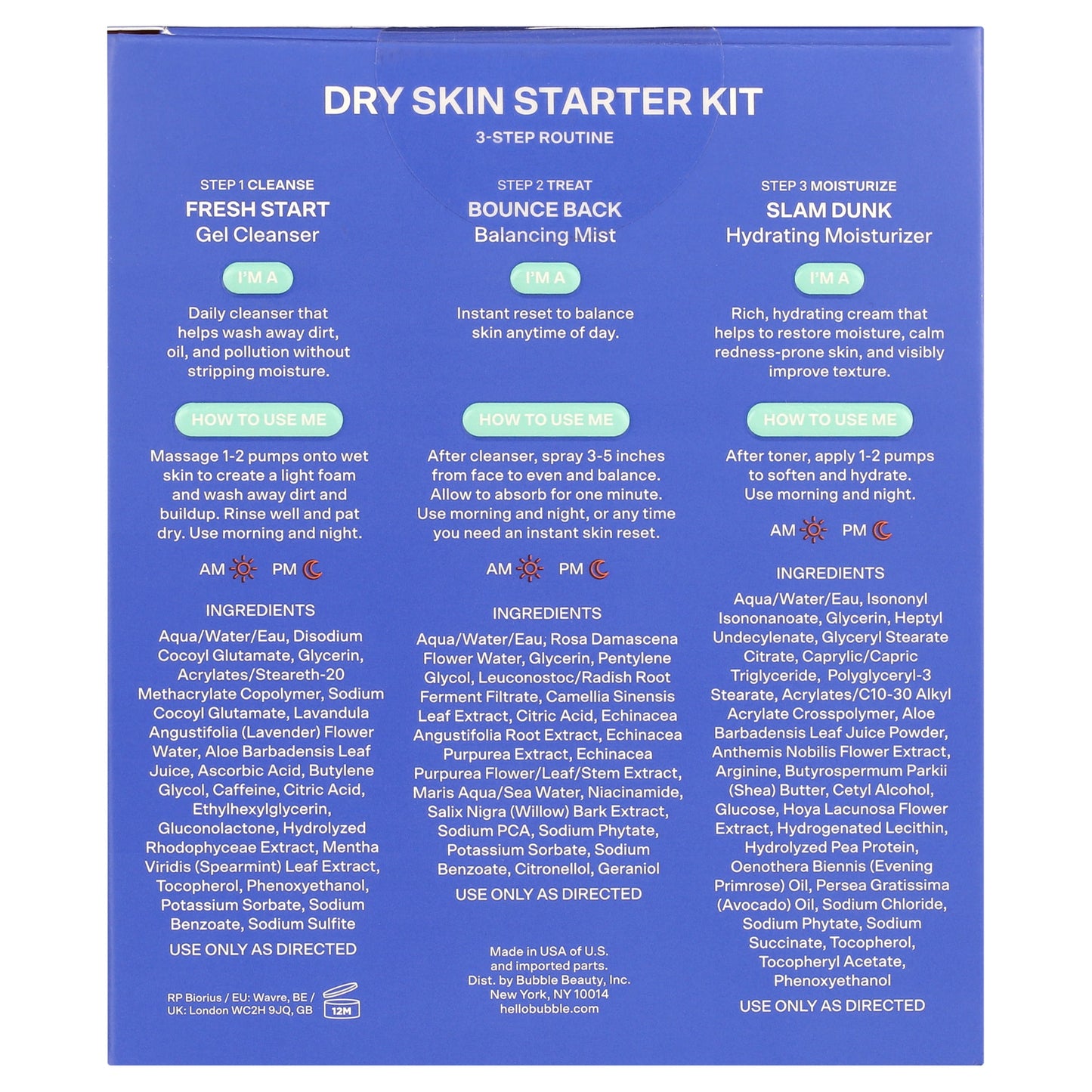Bubble Skincare 3-Step Hydrating Routine Bundle – For Normal to Dry Skin, Unisex, Set of 3