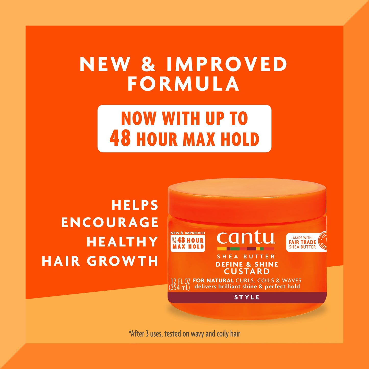 Define and shine is the name of the game with the nutrient-dense styling formula in the Cantu Shea Butter for Natural Hair Define & Shine Custard 12 fl oz. We’ve infused our core ingredient shea butter with nourishing olive, coconut, grapeseed, avocado, almond, jojoba & mango seed oils to ensure you’re getting both style and curl care. This unique blend ensures a long-lasting hold on all your twist-outs and wash-n-go styles. Use on soaking wet hair for the perfect additional moisture and definition. We care for every curl, which means this custard was formulated with no mineral oil, sulfates, parabens, silicones, phthalates, gluten, paraffin or propylene glycol.