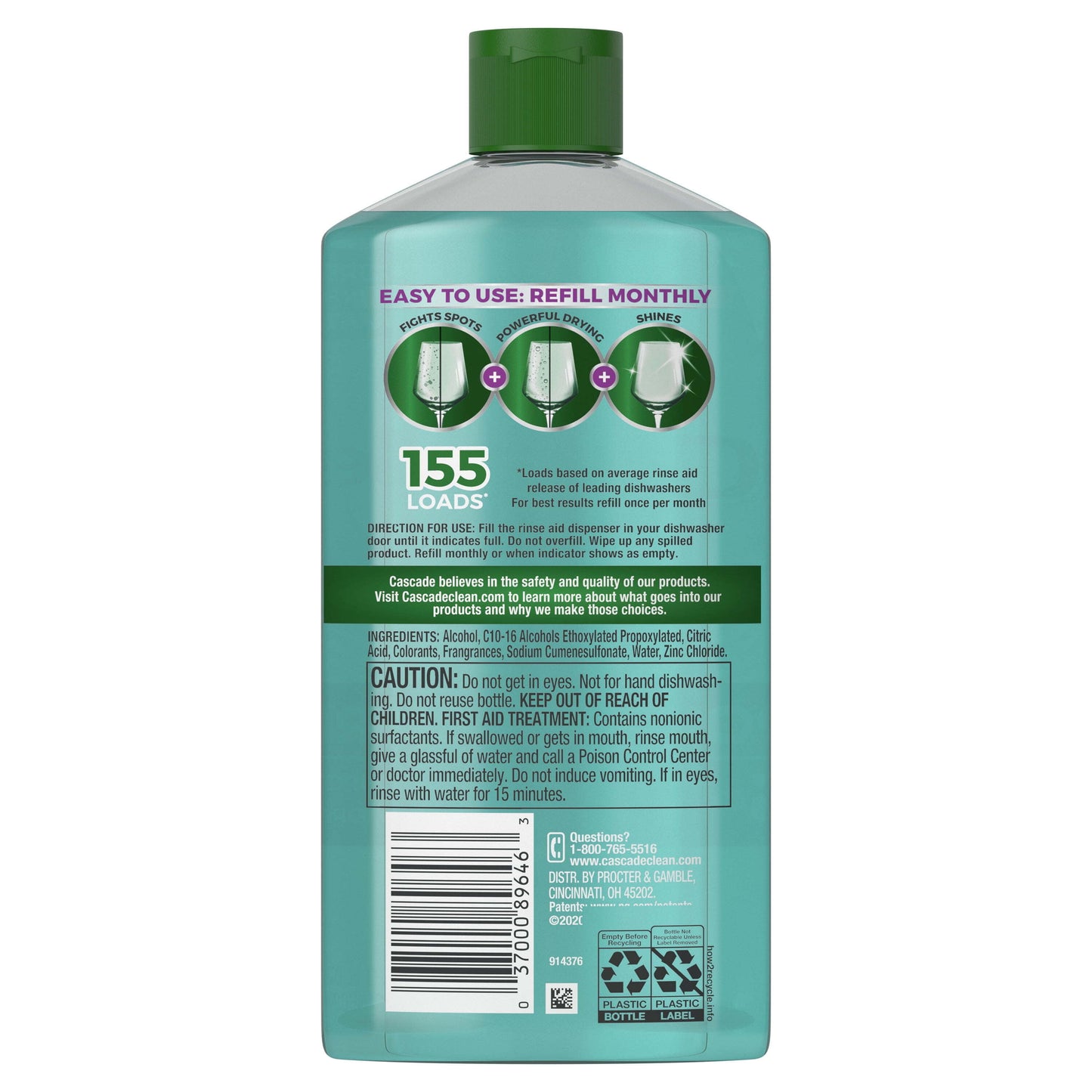 Cascade Power Dry Rinse Aid has three benefits in one product to Prevent Spots, Dry, & Shine your dishes. Cascade Power Dry Rinse Aid delivers an Unbeatable Dry because its sheeting action helps prevent dish water from clinging to your dishes during your machine's rinse cycle so your dishes rinse cleaner, dry faster, and come out dry & shining with virtually no water spots or streaks vs detergent alone. Plus, Cascade Power Dry Rinse Aid works great even in hard water. Cascade Power Dry Rinse Aid features an easy to pour cap to prevent spills and is easy to use. For best results, refill your dishwasher with Cascade Power Dry Rinse Aid monthly. Cascade Power Dry Rinse Aid is recommended by Cascade Detergent. Cascade is the #1 Recommended Brand in North America More dishwasher brands in North America recommend Cascade vs. any other automatic dishwashing detergent brand, recommendations as part of co-marketing agreements. Fresh 16 fl. oz.