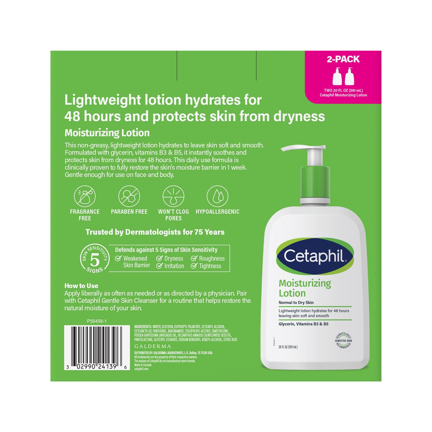 Cetaphil Moisturizing Lotion, Dry to Normal Sensitive Skin, 20 fl oz, 2-count