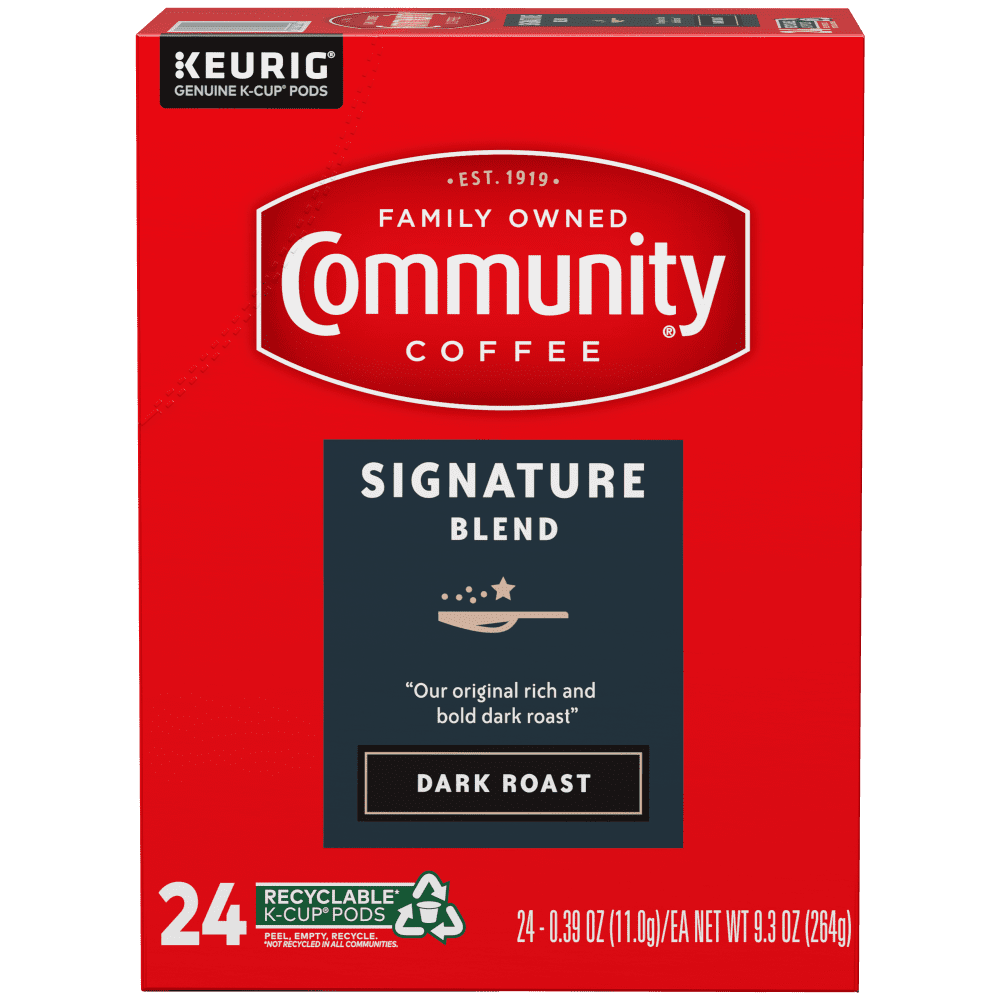 Start your day with the rich, bold taste of Community Coffee Signature Blend Dark Roast K-Cup Coffee Pods. Crafted from premium Arabica beans, this dark roast delivers a smooth, full-bodied flavor with a bold aroma, perfect for coffee lovers who enjoy a classic, robust cup.