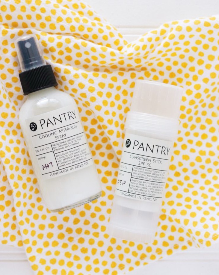 Pantry Products' cooling + hydrating After-Sun Spray is the ultimate remedy for sun-parched skin. Crafted with a meticulous selection of organic ingredients, including soothing organic aloe vera gel, nourishing coconut oil, antioxidant-rich vitamin E, + cooling peppermint + eucalyptus essential oils, this refreshing blend is your go-to for post-sun relief.