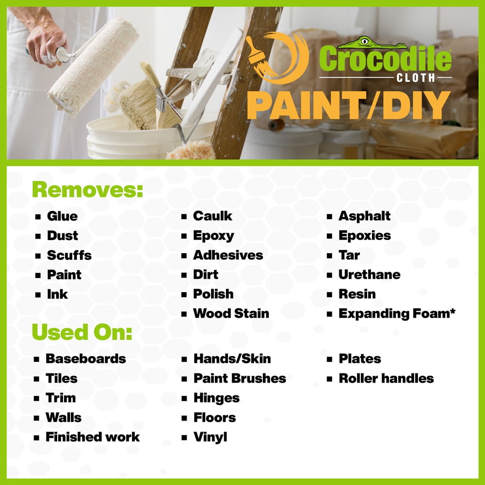 - Crocodile Cloth® specially designed this cleaning wipe not just for painting-related messes but also for painting surface prep. Use it for damp-dusting or removal of oils, adhesives, and residues prior to painting.