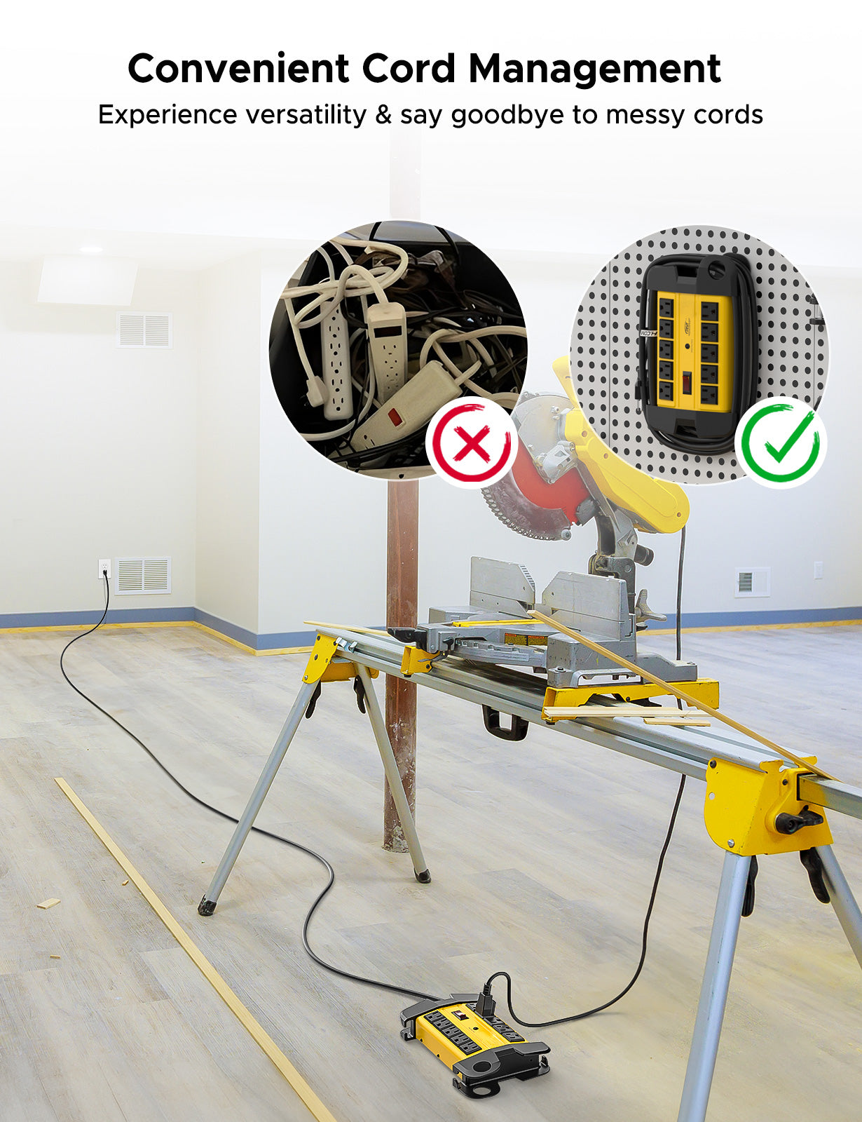 - Cord Holder design can wrap 15/6 feet cord easily around the power strip, the hanging hole is very easy and helpful for storage.