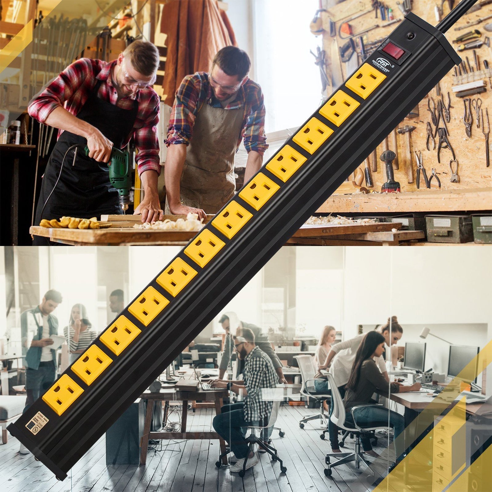 - [12 Outlets with Wide Spacing for All Plug Types]: Equipped with 12 widely-spaced outlets, this power strip accommodates a variety of plugs and adapters without blocking adjacent sockets. Perfect for use with home electronics, office equipment, and workshop tools.