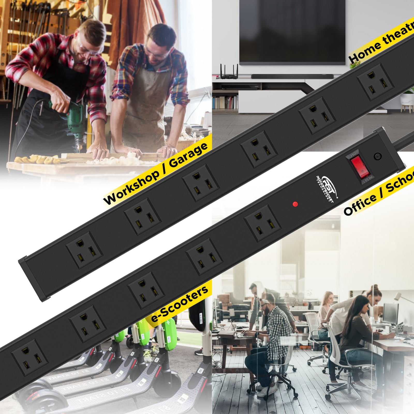 - Premium Safety Features - 1800 Joule surge protection & EMI filter & built-in 15A circuit breaker provide superior protection for everyday use in professional work areas and home offices, protecting computers, peripherals, and other electronic devices from damaging surges, voltage fluctuations, and noise spikes.