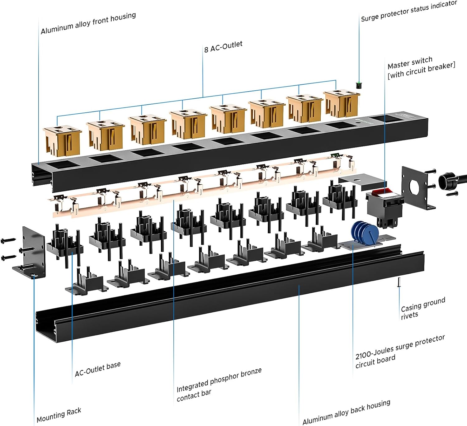 Easy-to-recycle aluminum profile ensures environmental responsibility. Enjoy a 36-month warranty and $3,000,000 product liability insurance. Friendly customer service adds to the reliability. This power strip combines functionality with eco-friendliness, making it a smart choice.
