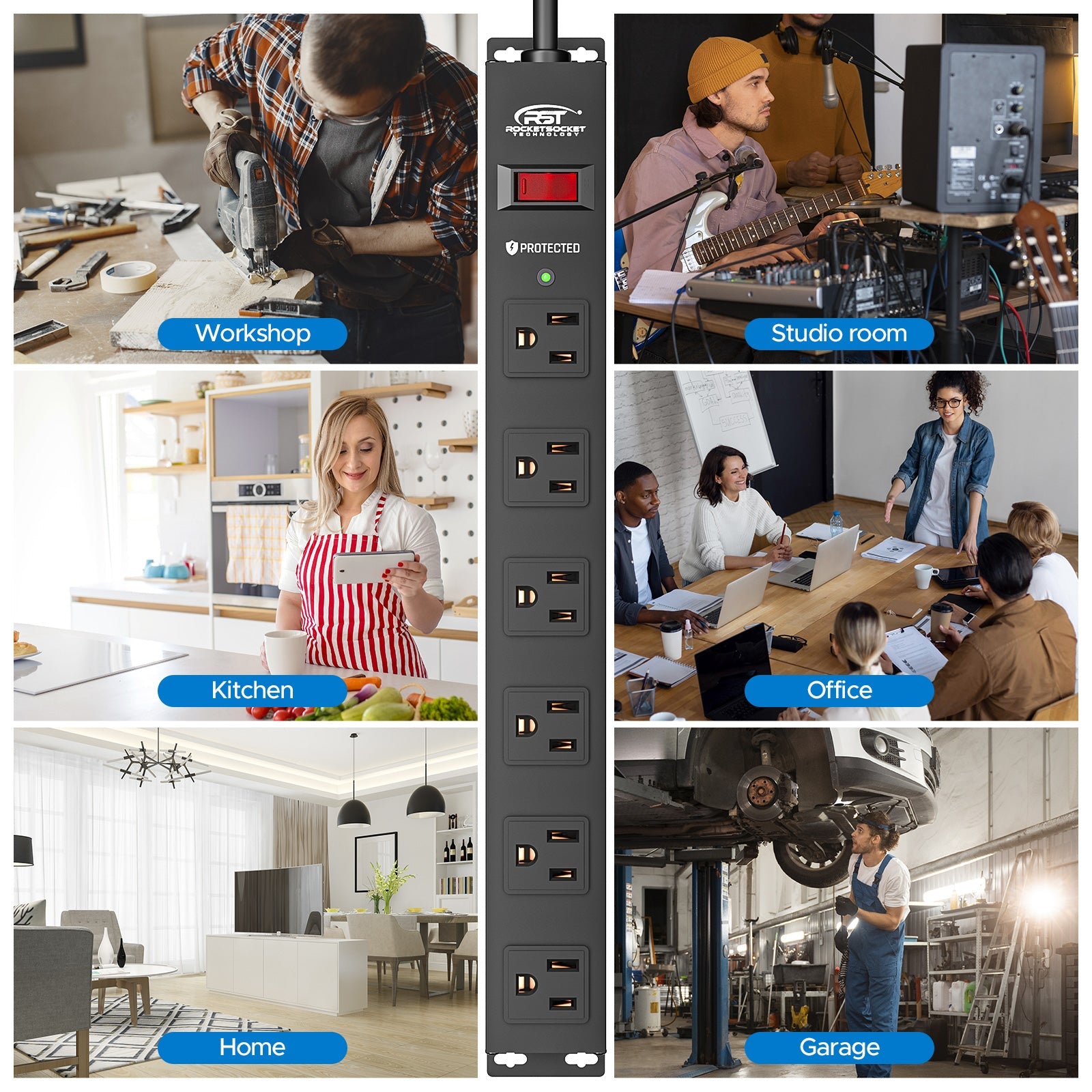 🌟 CRST 6 Outlets Wide Spaced Mountable Metal Power Strip 🌟