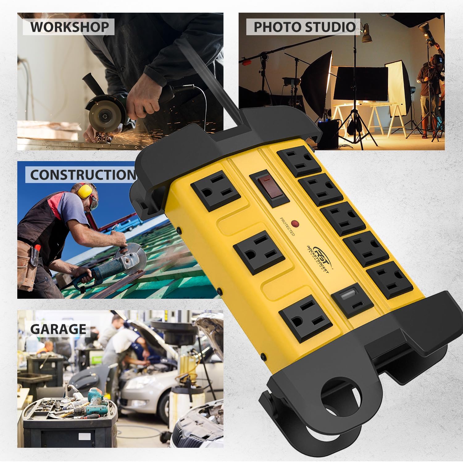CRST Heavy Duty Surge Protector Power Strip with USB-C Port 8-Outlet Wider Spaced Mountable Metal Power Bar with Long Extension Cord 15A Circuit Breaker 1350 Joules Protection