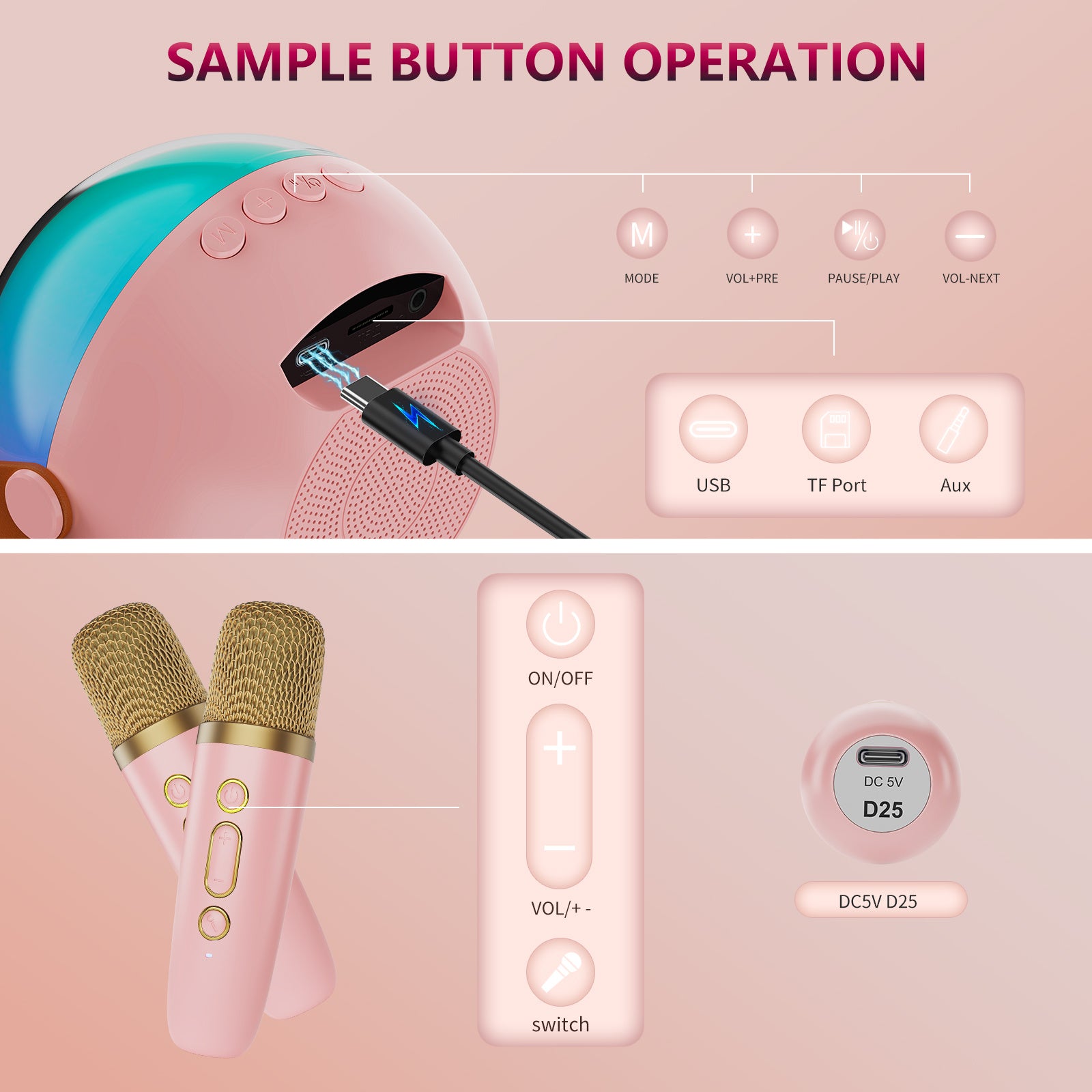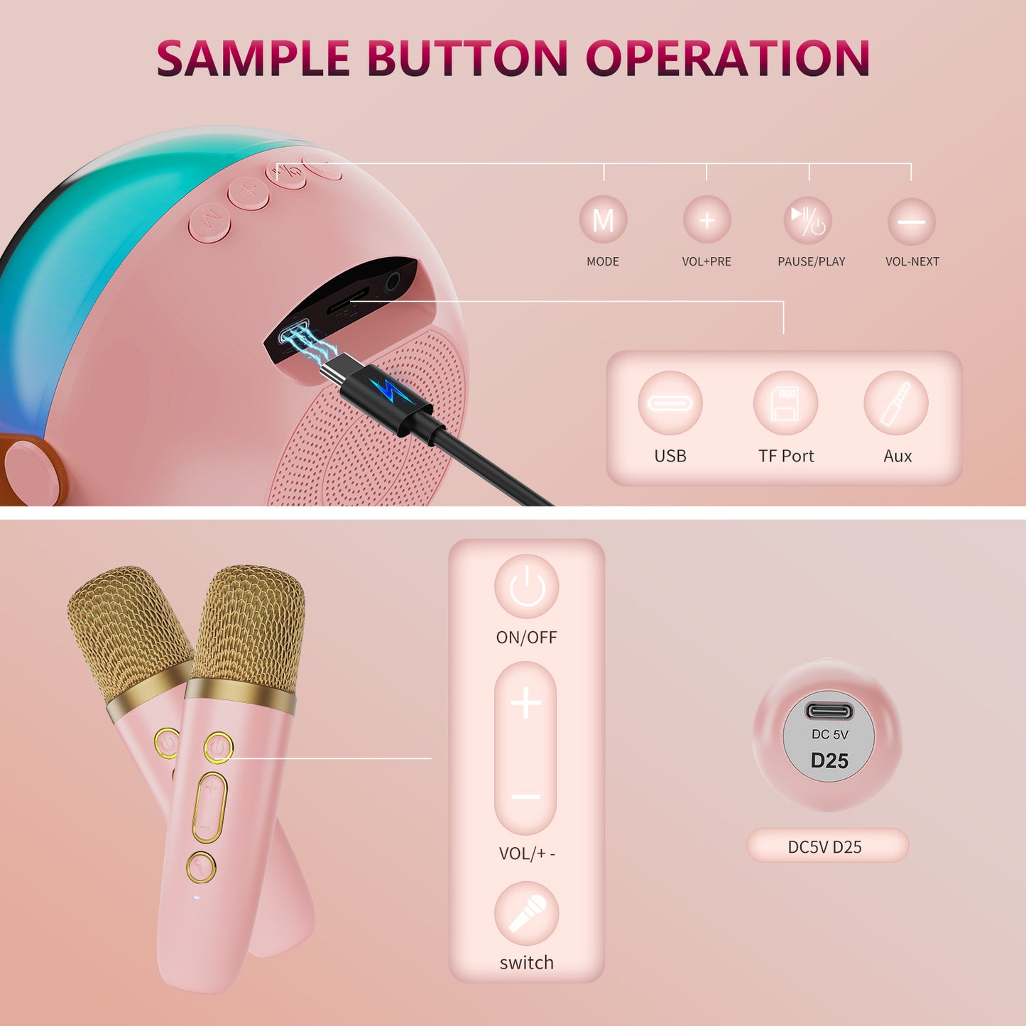 D25 Mini Karaoke Machine With Dazzling Lights And Wireless Microphones