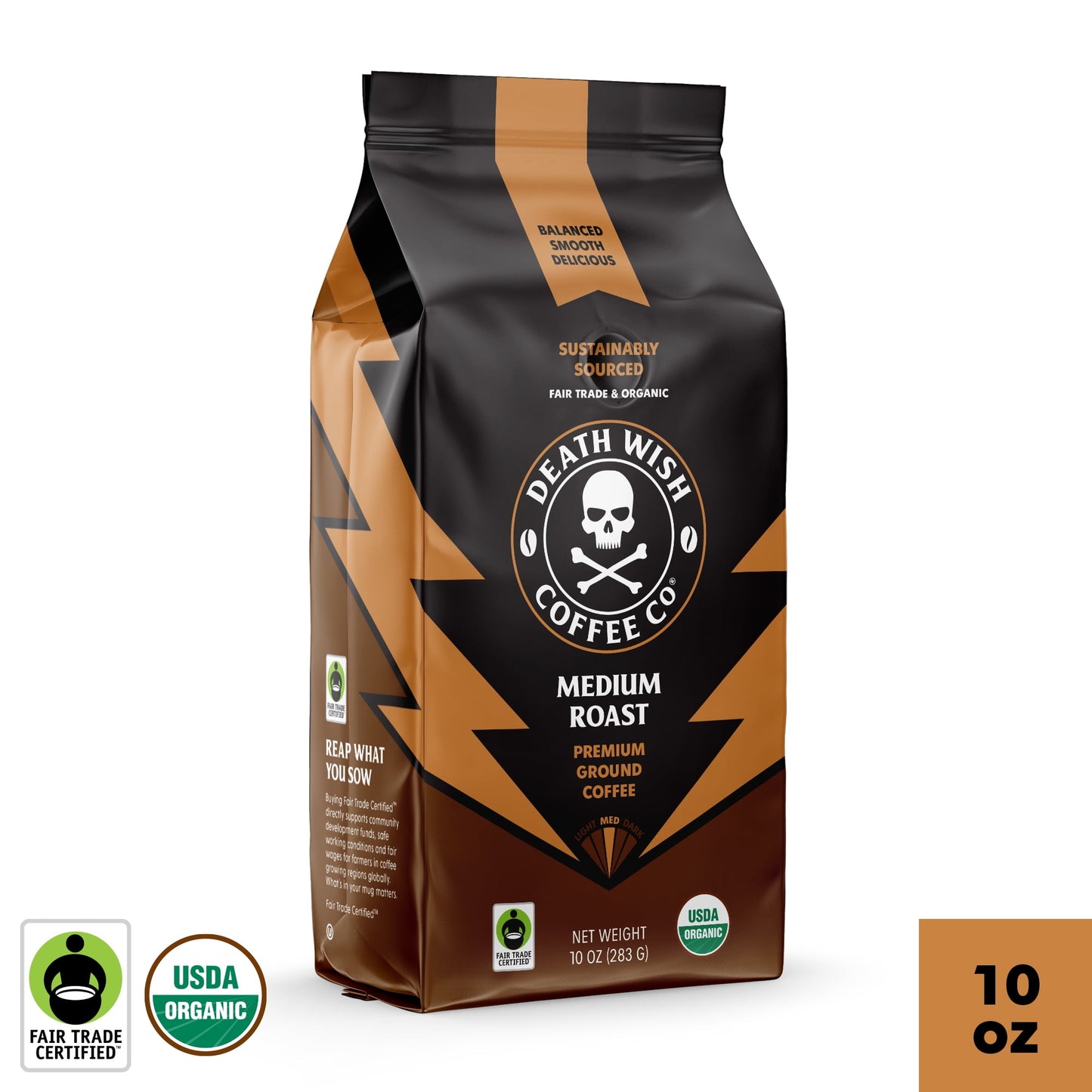 Death Wish Coffee Medium Roast, Ground, 10 oz – Fair Trade, Organic, Bold & Smooth Flavor