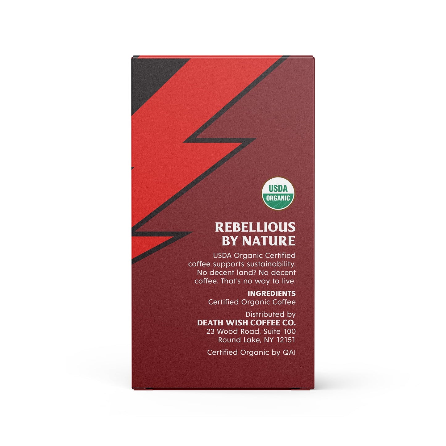 For a Morning Coffee Routine That's Lightning Quick. Death Wish Coffee Dark Roast Single-Serve Coffee Pods combine the bold taste of Death Wish Coffee with the convenience of single-serve coffee pods. Compatible with most K-Cup® coffee machines, each single-serve coffee pod is stronger and smoother than your drive-thru coffee brew and never bitter. Our shelf-stable Original Dark Roast Coffee is sourced from the highest-quality, Fair Trade Certified, and USDA Certified Organic coffee beans in the world. Roasted in the USA to perfection with notes of dark chocolate and black cherry for any coffee lover, Death Wish Coffee Dark Roast Single-Serve Coffee Pods help you feel fueled and focused in a flash. *Death Wish Coffee has no affiliation with Keurig Green Mountain, Inc., and the statements herein have not been authorized by Keurig Green Mountain, Inc.