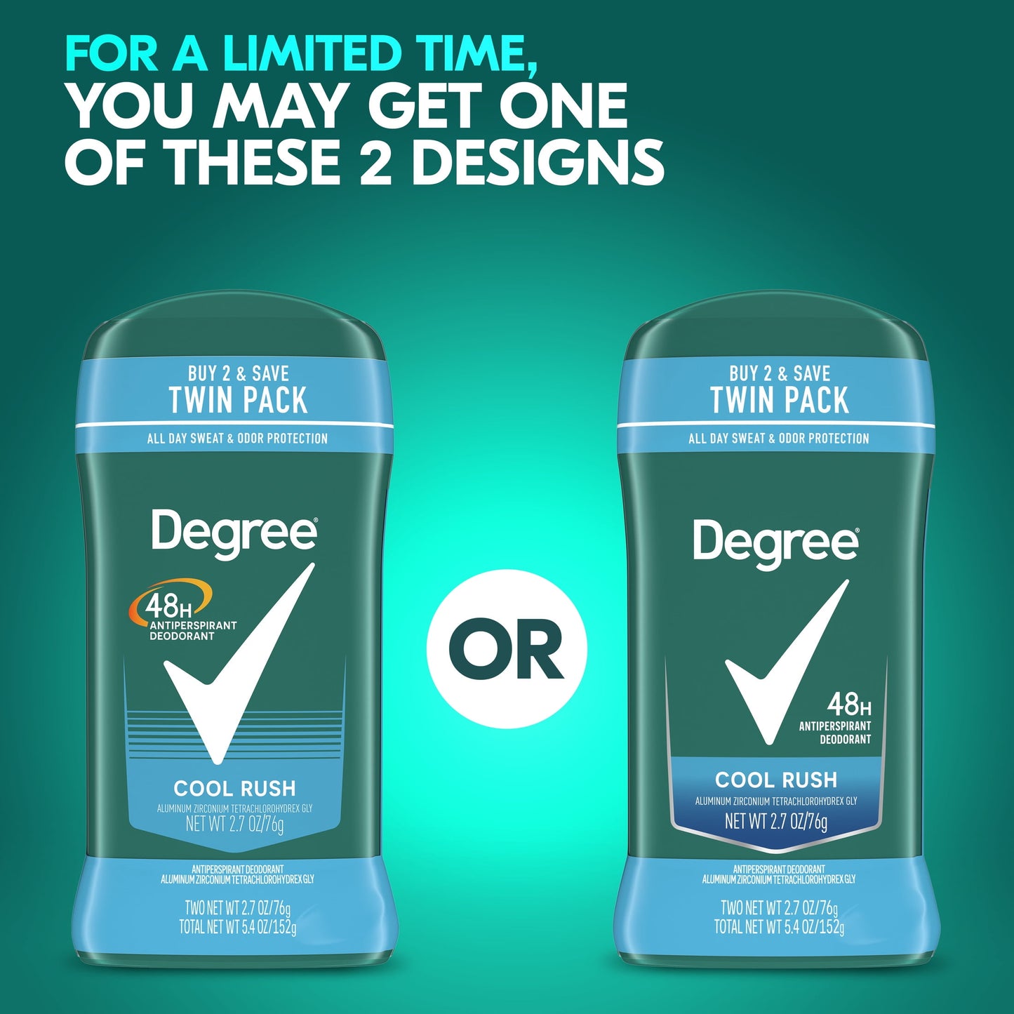 - Degree Men Original Antiperspirant Deodorant for Men Cool Rush Twin Pack, 2.7oz