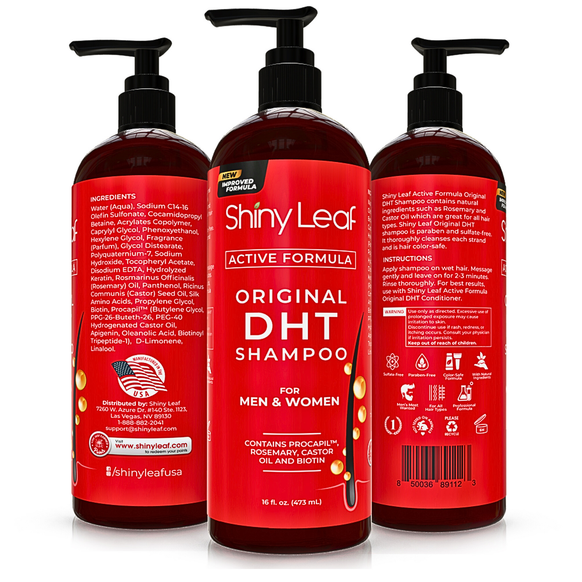 Get the head-turning hair you've always wanted with Shiny Leaf's DHT Original Shampoo! Natural ingredients like rosemary leaf oil and castor oil will deeply nourish your locks, while the powerful Procapil formula helps to block out harmful DHT hormones that can lead to hair loss. Enjoy a lather so luxurious it'll make everyone envious - no matter if you're male or female. Pamper yourself in strong and shiny strands from root all the way to tip — now that's what we call gorgeous!