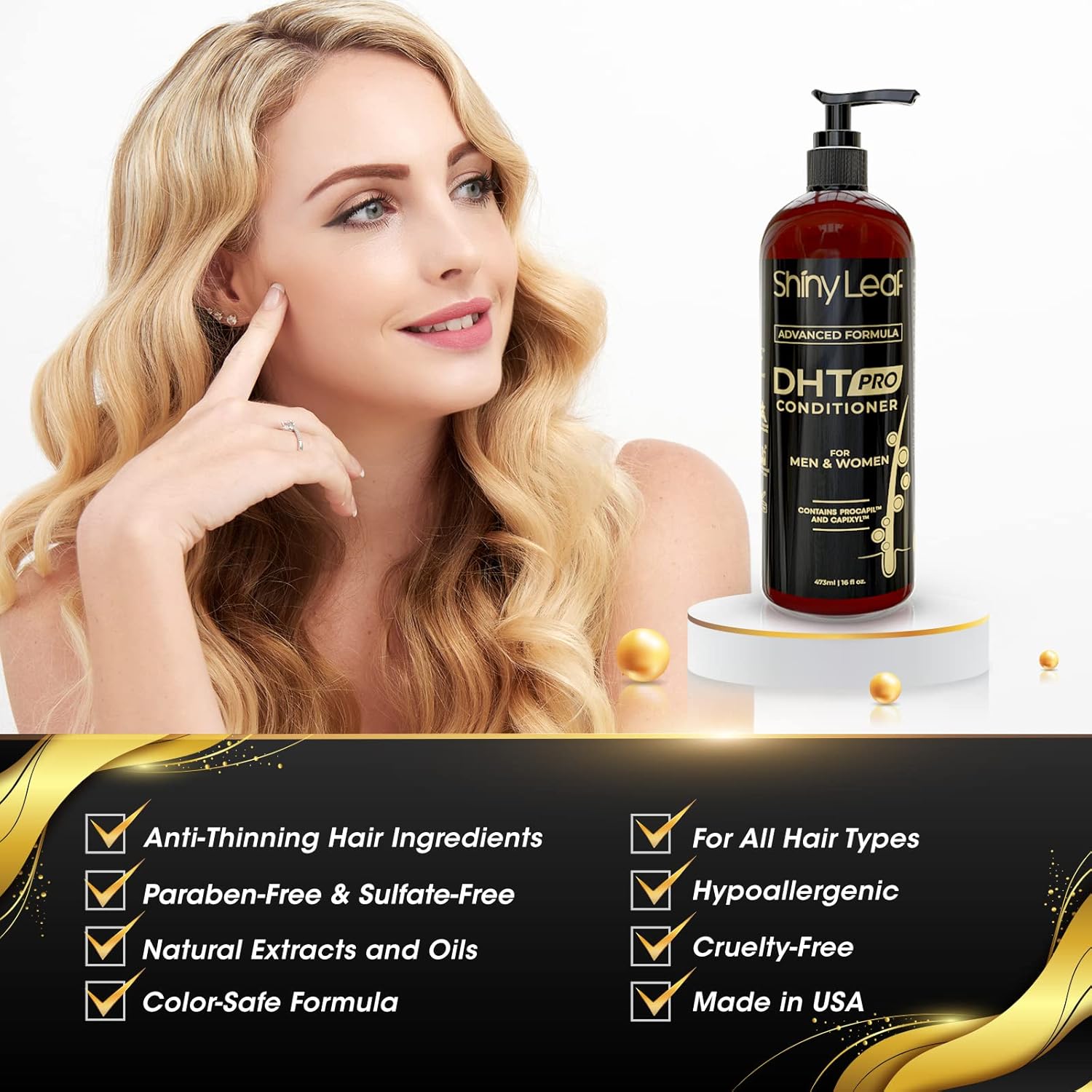 Advanced DHT Blocker Conditioner Bundle – A powerful duo of DHT Original and Pro Conditioners designed to combat hair loss and thinning. Formulated with Procapil, Capixyl, and Rosemary Oil, this sulfate-free, paraben-free set nourishes, strengthens, and revitalizes hair follicles for thicker, healthier growth. Infused with natural oils, vitamins, and plant extracts, it leaves hair soft, smooth, and full of life. Perfect for men and women seeking a safe, ethical solution to hair thinning.