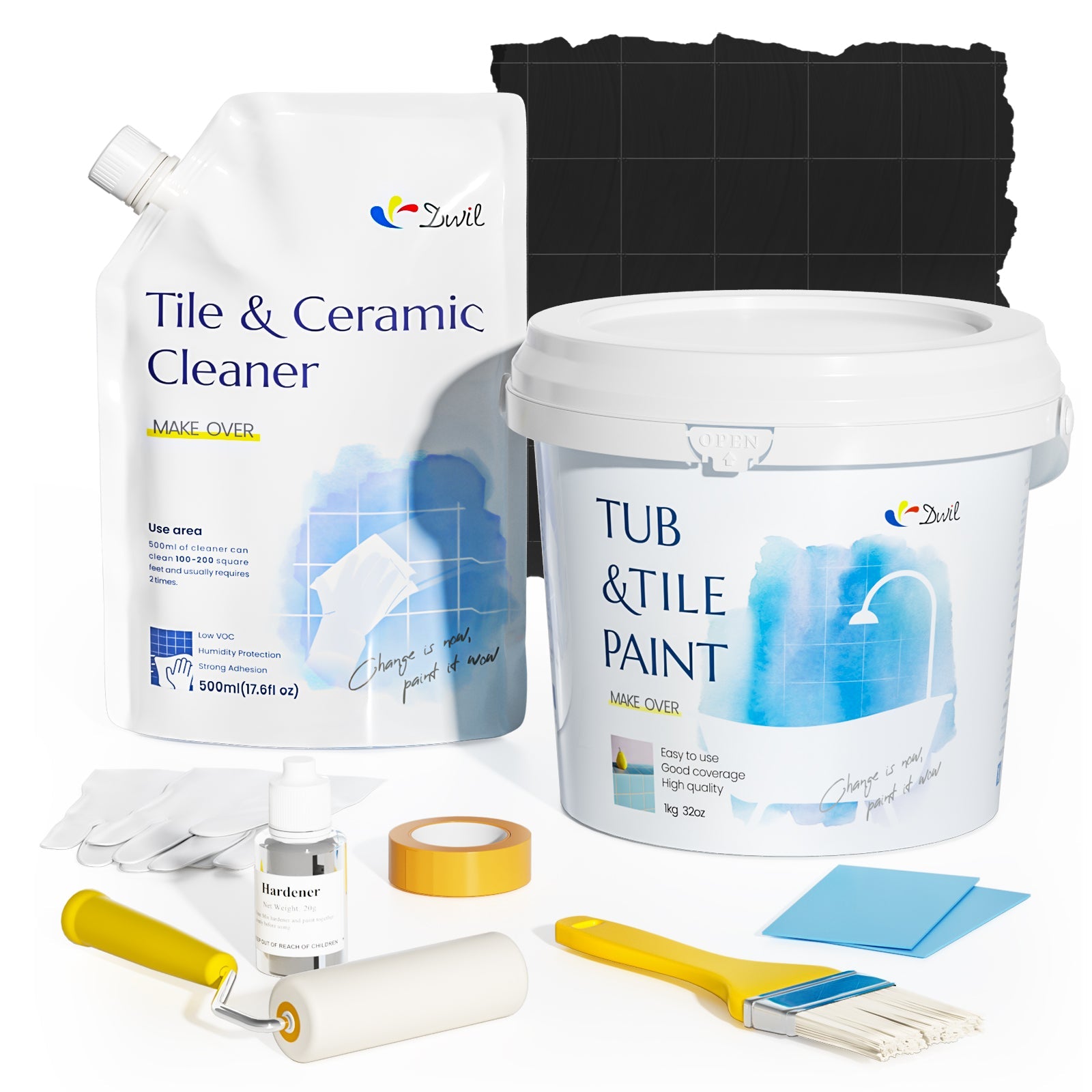 DWIL Tub and Tile Paint (1kg / 32 oz, with Ceramic Cleaner 500ml)
