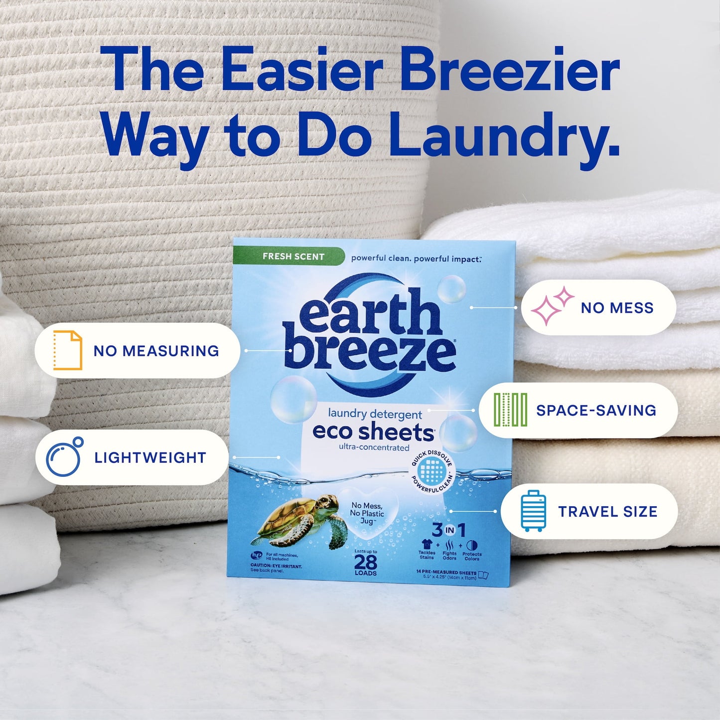 - Earth Breeze Laundry Detergent Eco Sheets also available in Fragrance-Free as well as 64 load sizes with Fresh Scent and Fragrance Free options