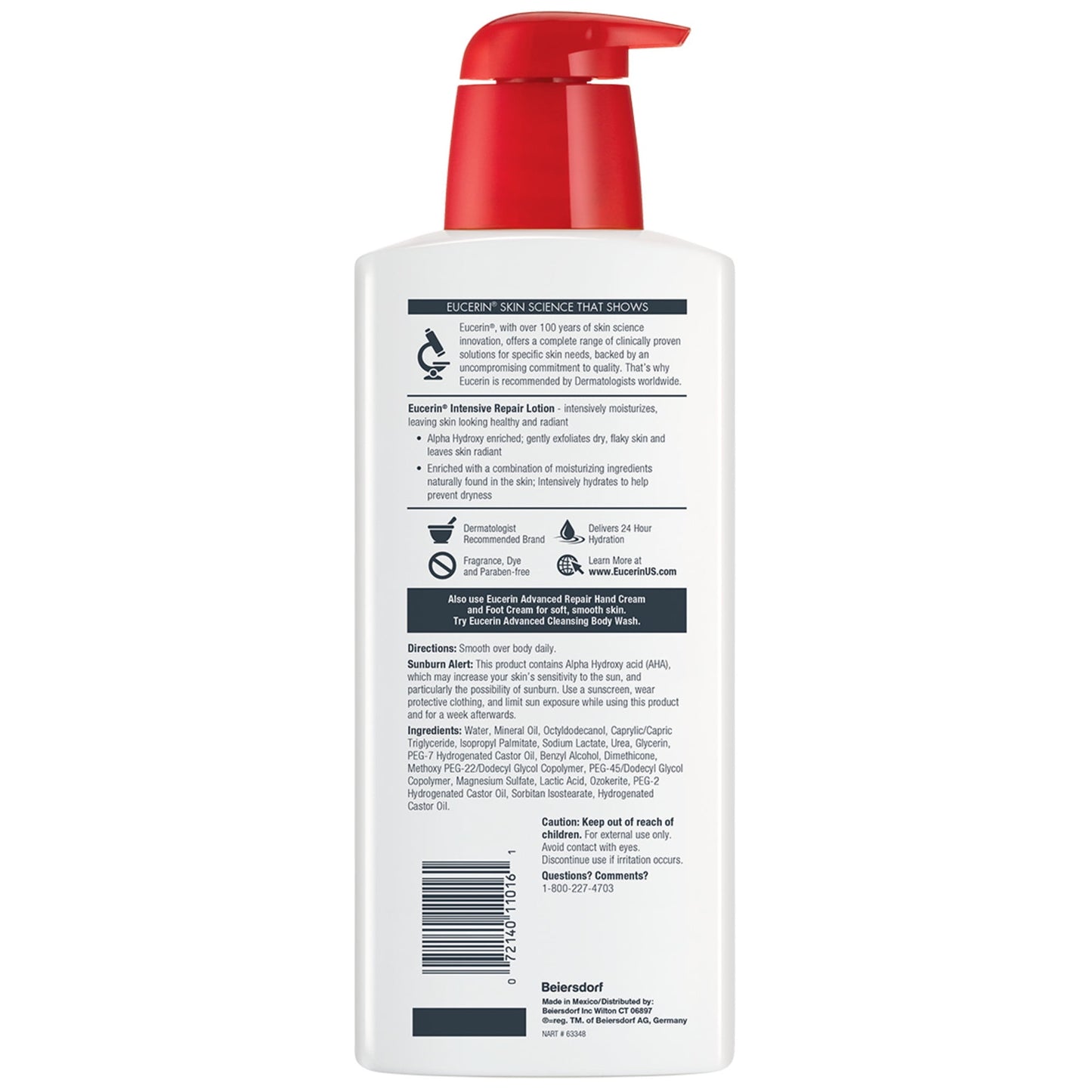 Eucerin Intensive Repair Body Lotion, Fragrance-Free, 16.9 fl oz – Deep Hydration for Dry Skin