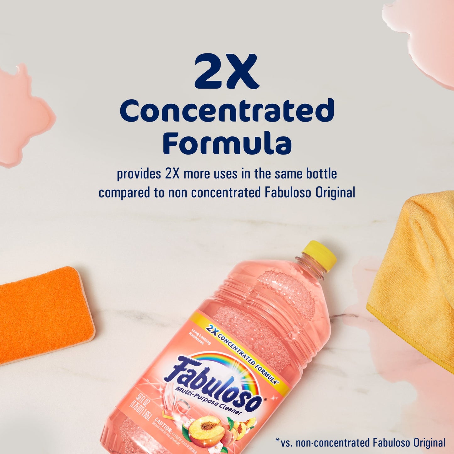 - Fabuloso 2X concentrated formula provides 2X more active ingredients compared to non-concentrated Fabuloso Original