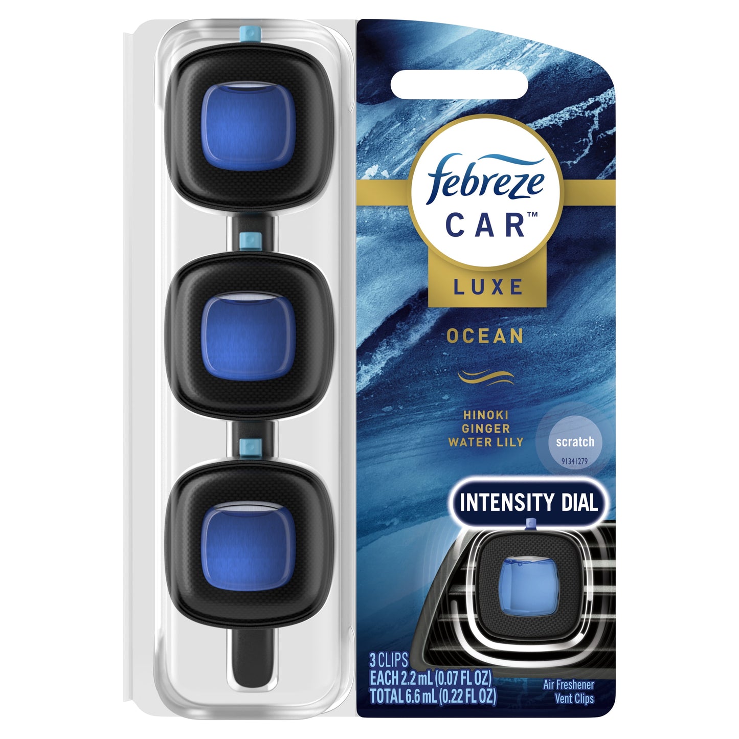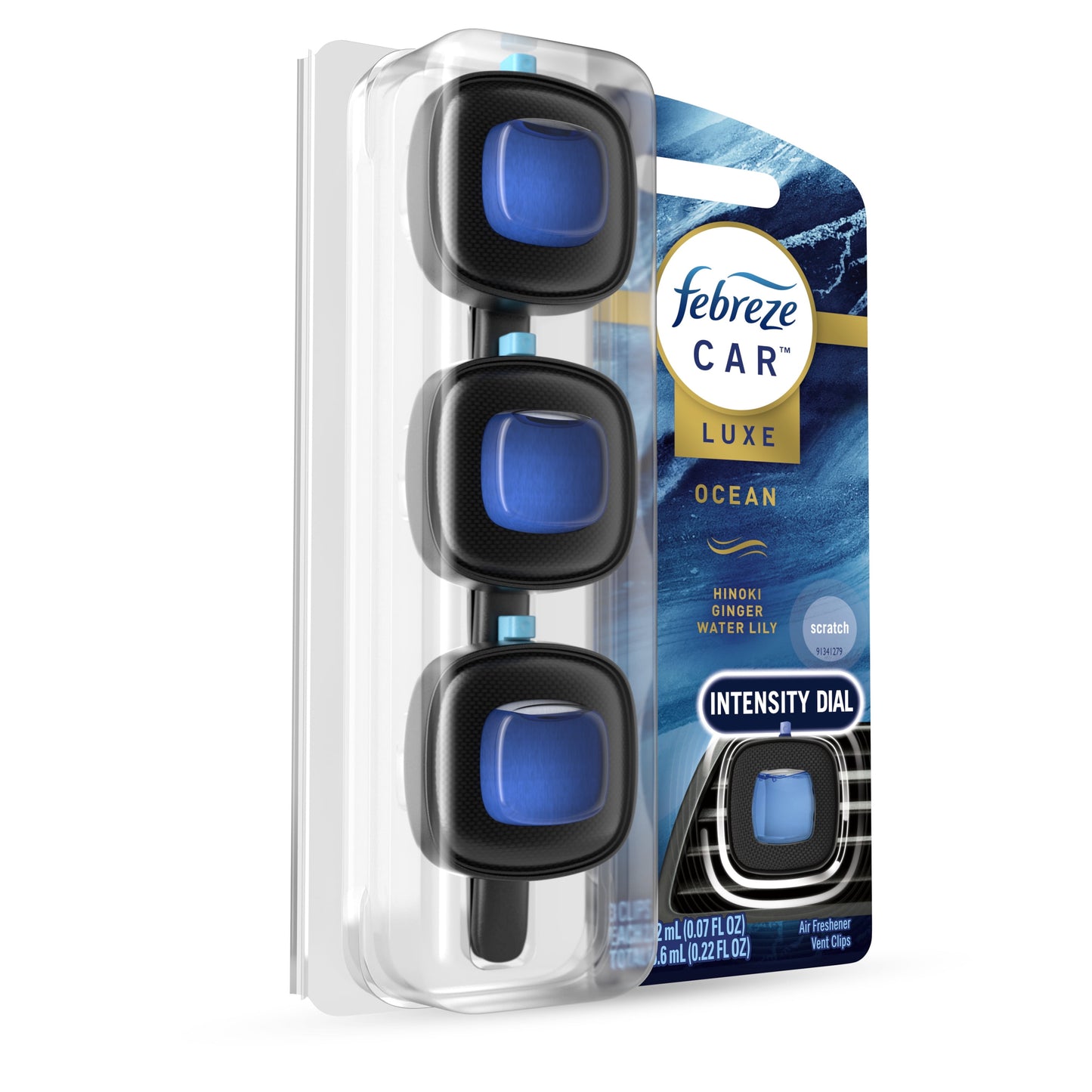 Febreze Car Air Freshener, Odor-Fighting Car Vent Clip, Ocean, 3 Count