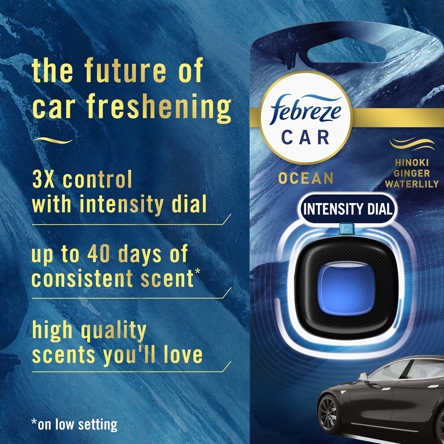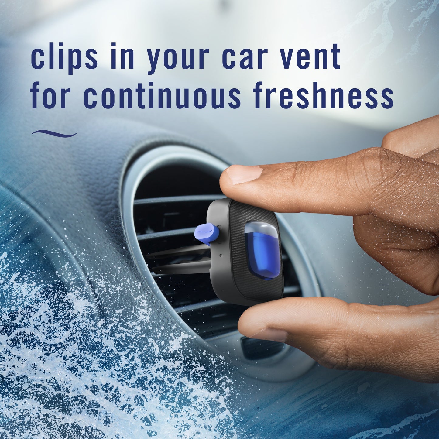 Kick car odors to the curb and indulge in up to 40 days of consistent scent with Febreze Car Vent Clips, the ultimate solution for a refreshing driving experience. Unlike other car air fresheners that often start off with an overpowering floral punch, Febreze delivers a perfectly balanced aroma right from the get-go. You’ll enjoy that signature first-day Febreze freshness for an impressive duration of up to 40 days, thanks to its patented Steady Release Technology. This innovative Febreze car air freshener vent clip is incredibly easy to install: simply unfold the clip until you hear a reassuring click, then attach it to your car's vent. It cleverly utilizes your vehicle’s fan to circulate a consistently delightful scent throughout your entire cabin. These compact car odor-fighting air freshener clips are engineered with powerful odor fighters designed to combat any unpleasant car stink, ensuring a refreshing atmosphere that lasts. Plus, keep your extra clips stored and fresh with Febreze Car's convenient Stay-Fresh Storage Case, making it easy to maintain that invigorating scent. So say goodbye to those overwhelming, fade-too-soon air fresheners, and elevate every drive with the long-lasting freshness of Febreze Car odor-fighting air freshener. And if you’re looking for lasting freshness in your home, don’t forget to try Febreze Fade Defy PLUG for an equally delightful experience. You'll love the fresh scent of Ocean. 0.07 fl oz, 3 Count