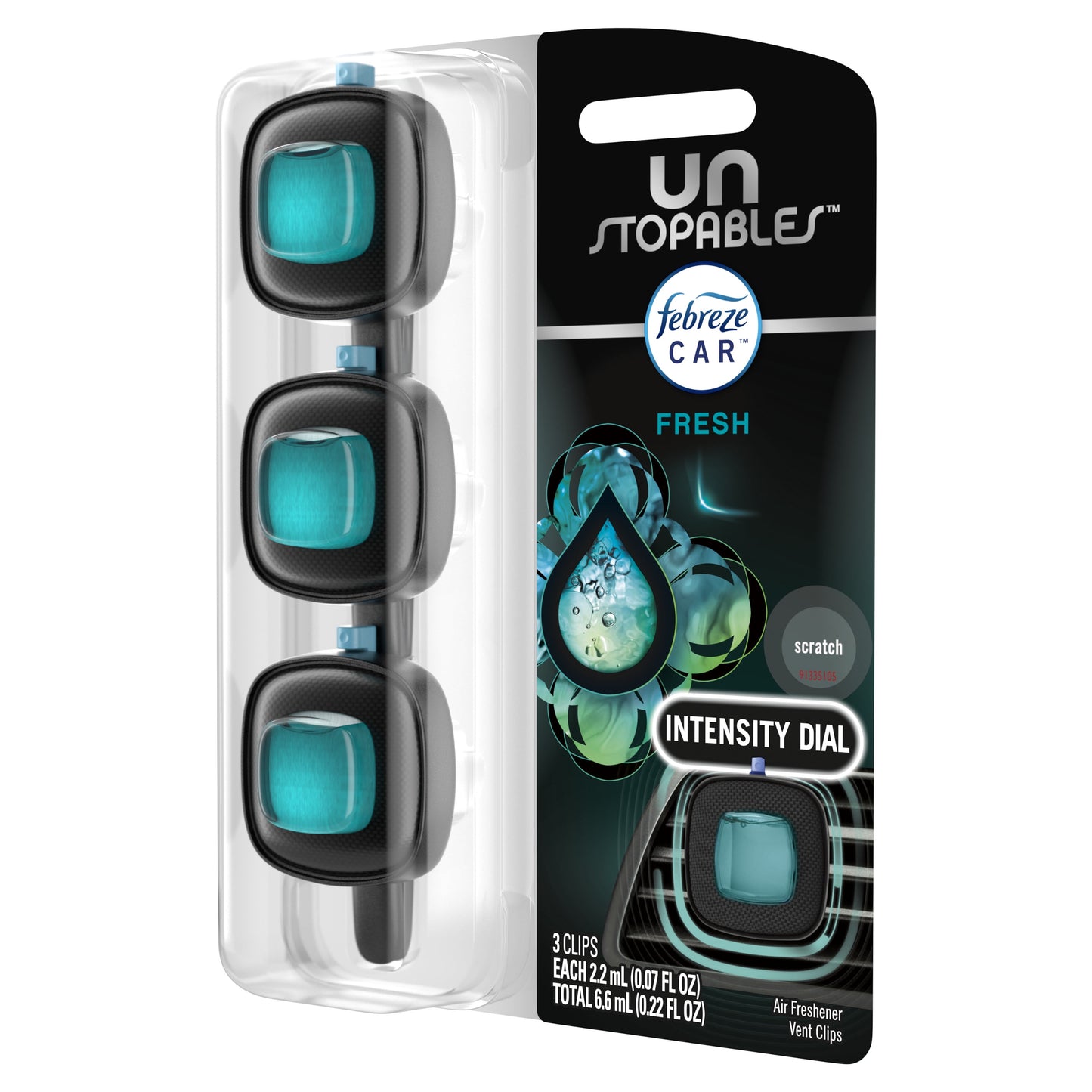 - Febreze Unstopables Odor-Fighting Car Freshener Vent Clip Fresh, .07 fl oz, 3 Count