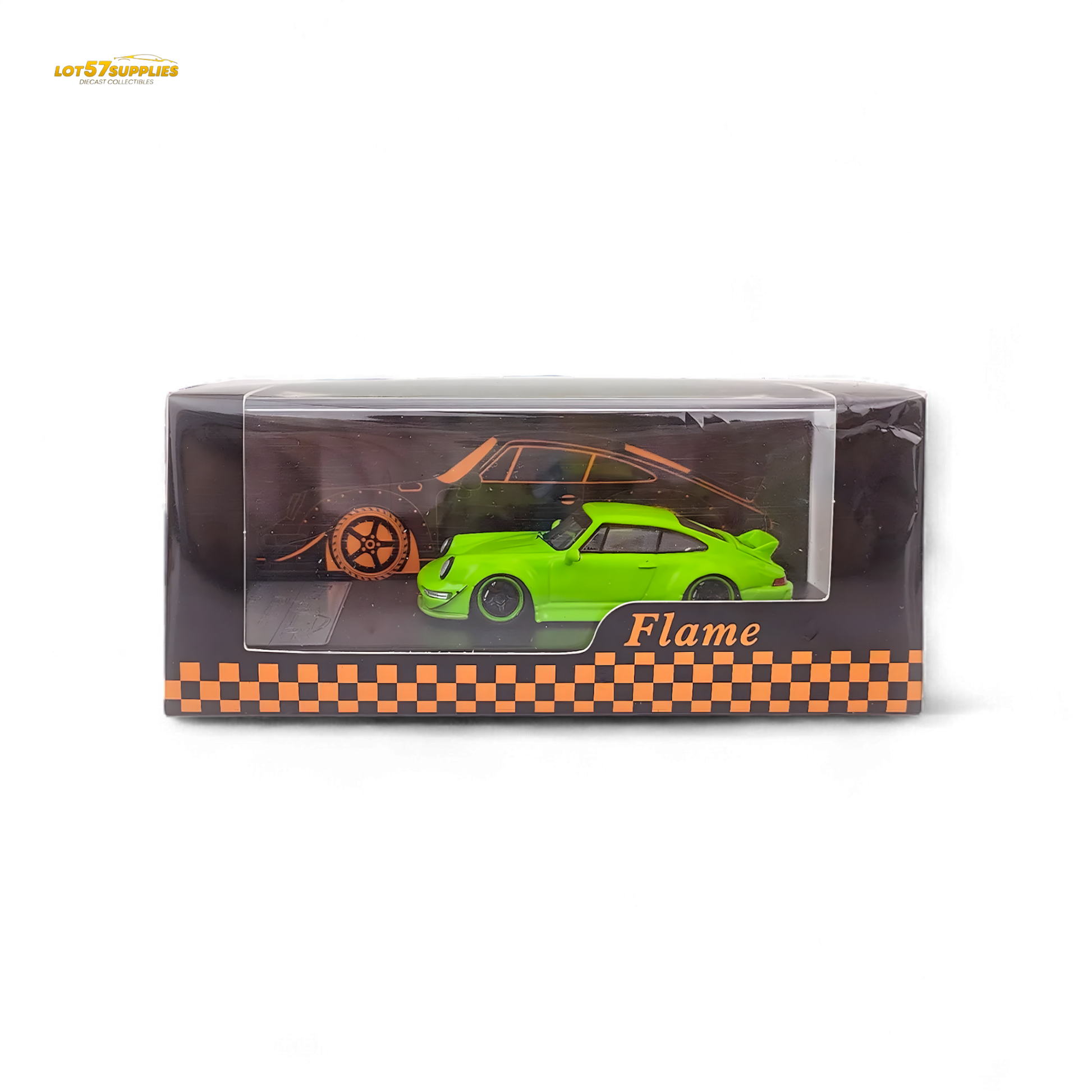 Flame Porsche 964 RWB Ducktail in Fluorescent Green 1:64