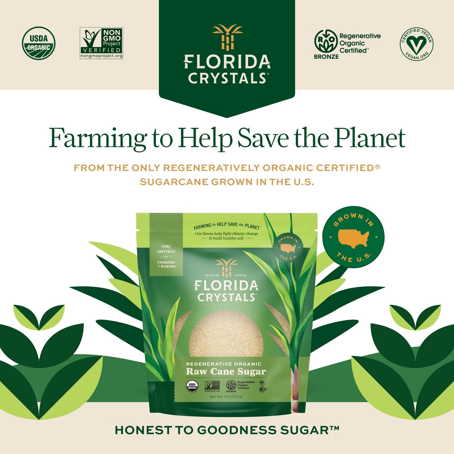 Sweeten naturally and sustainably with Florida Crystals Regenerative Organic Raw Cane Sugar. Grown in the U.S. using regenerative organic farming practices, this sugar is unrefined and minimally processed, preserving its natural golden color and rich molasses flavor.