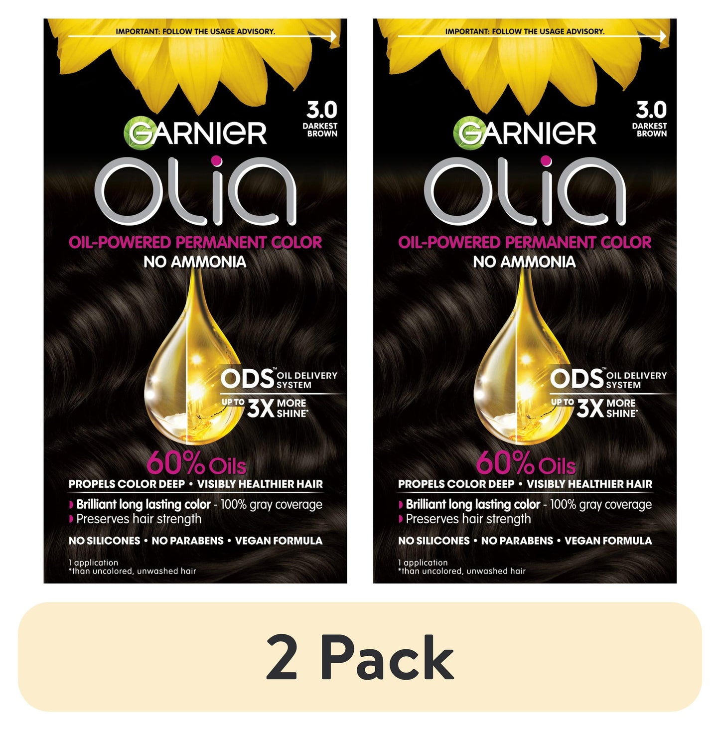 - Garnier Olia Permanent Hair Color is an ammonia free formula that delivers brilliant long-lasting color and 100% gray coverage without compromising the health of your hair.