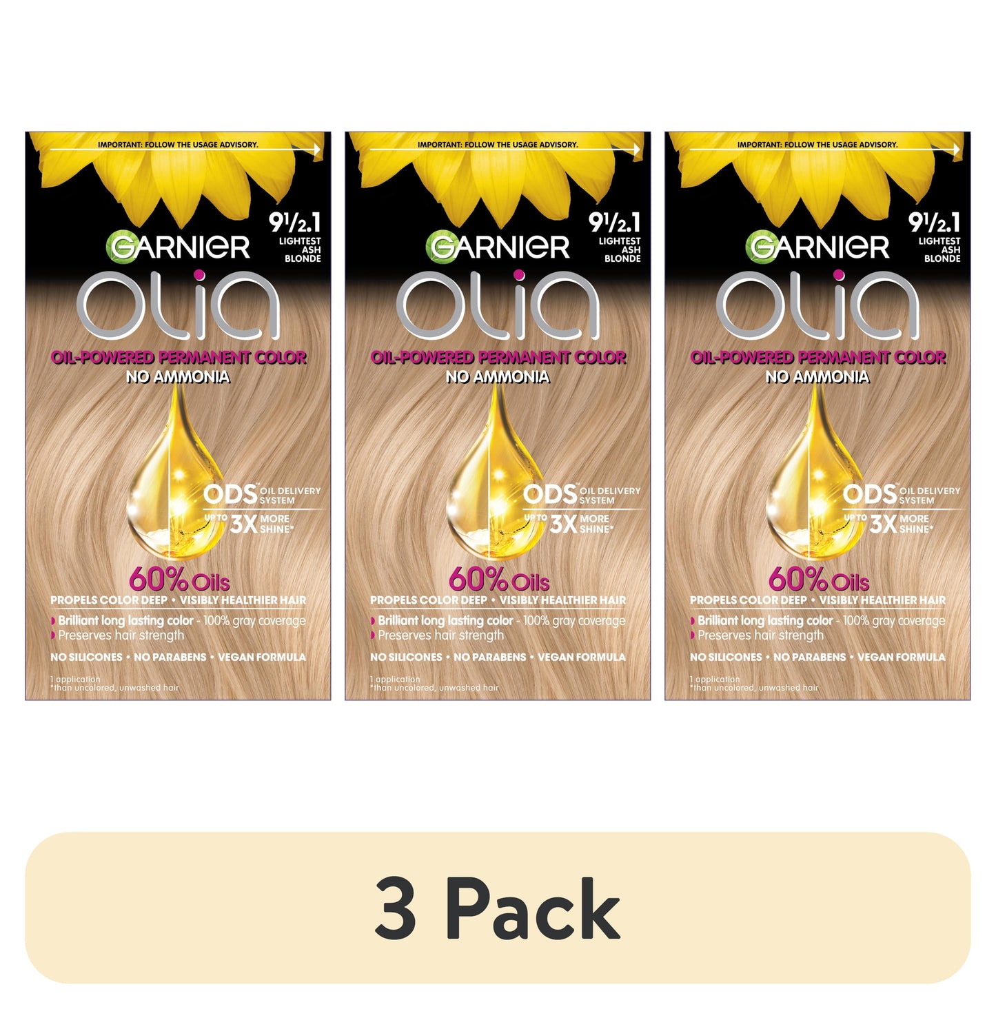 Garnier Olia Oil Powered Permanent Hair Color, 9.0 Light Blonde, Afraid of damage Garnier Olia Permanent Hair Color is an ammonia free formula that delivers brilliant long-lasting color and 100% gray coverage without compromising the health of Your hair. Olia is free from ammonia, silicones, parabens, and phthalates. it's Leaping Bunny certified by Cruelty Free International and vegan - formulated without animal derived ingredients. Olia is powered by a 60% oil blend with sunflower and camellia seed oil and our ODS technology which propels colorants deep into the hair. The formula has a delicate floral fragrance for the most decadent hair color experience./