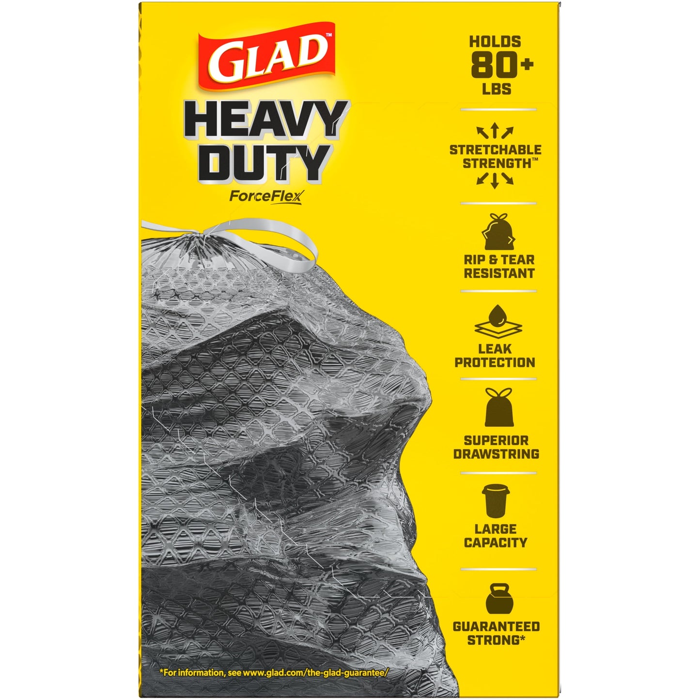 - GUARANTEED STRONG* TO HOLD 80+ POUNDS: Handle the heaviest cleanup loads with the guaranteed strength* of these Glad ForceFlex trash bags