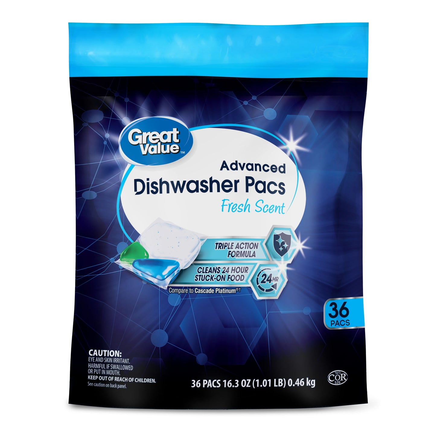 - Great Value Advanced Dishwasher Pacs, Fresh Scent, 36 Count