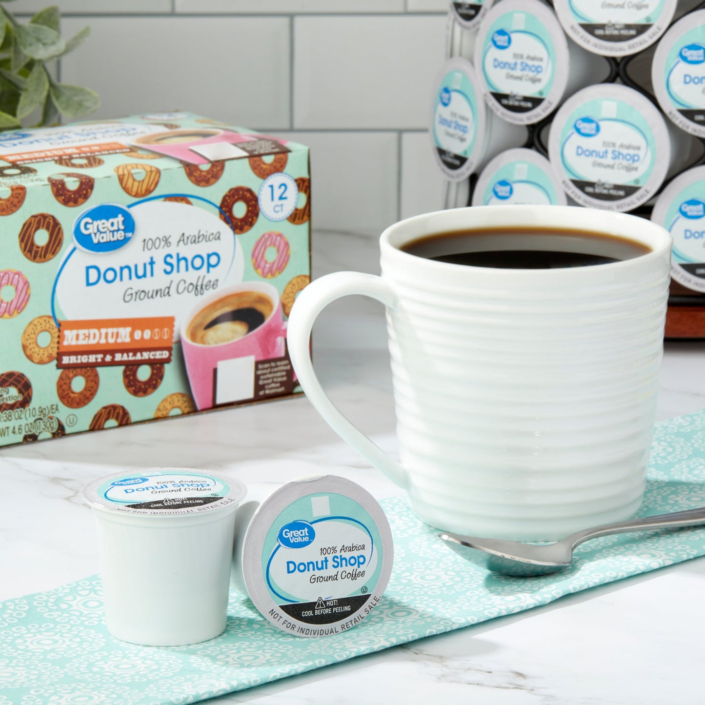 Great Value Donut Shop 100% Arabica Medium Roast Coffee Pods, 12 Count – Smooth Single-Serve Coffee